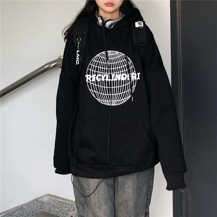 フードセーター レディース秋物ウィンター韓国ファッショントレンドプリントルーズジャケット オータム 冬物 ボーイズ スタイル デーモン40394762315