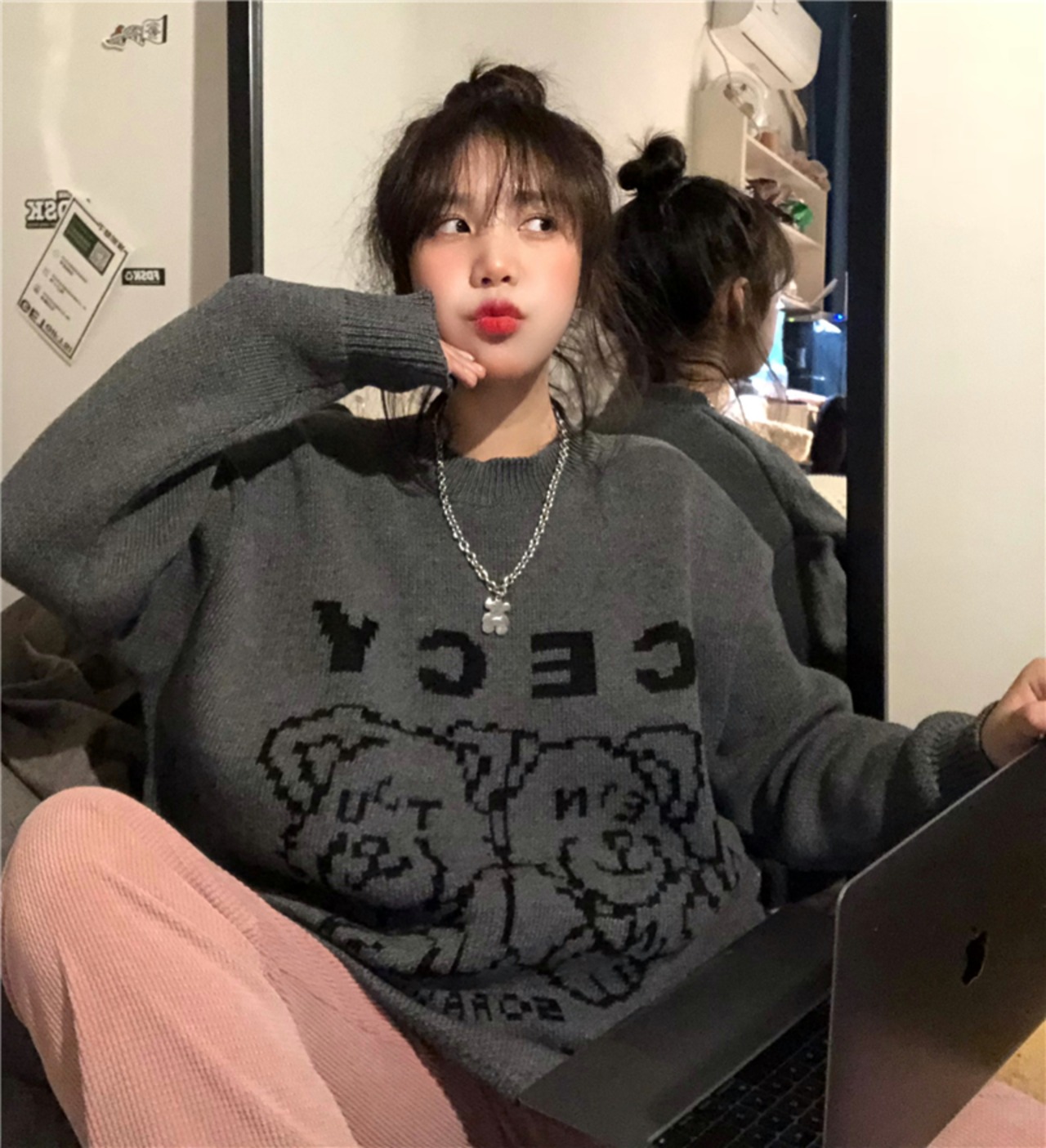 セーター ジャケット 韓国ファッションウィンタールーズラウンドネックプルオーバー ロング 冬物 Oネック 長袖 CHIL82039131345