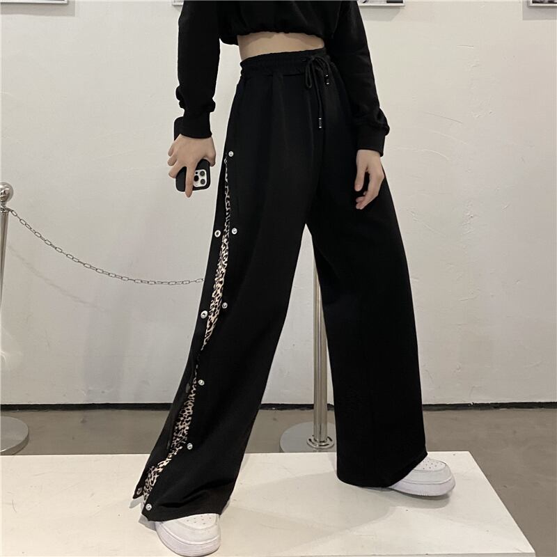 秋物ウィンターカジュアルパンツ レディース韓国ファッショントレンド厚みレオパードパターンブレストルーズ オータム 冬物 ステッチ ボーイズ スタイル デーモン10110552744