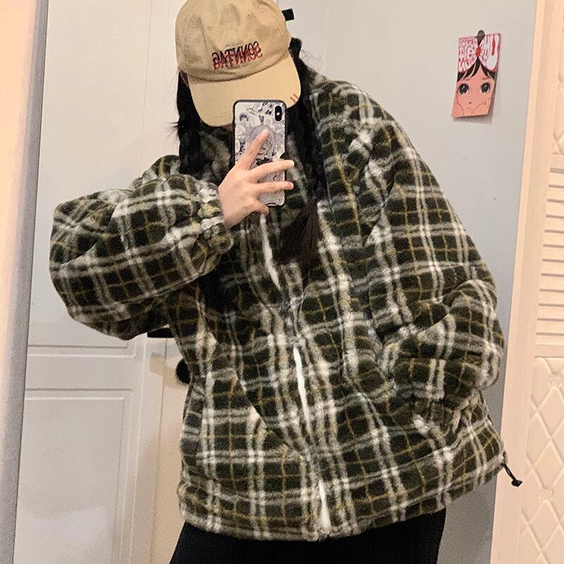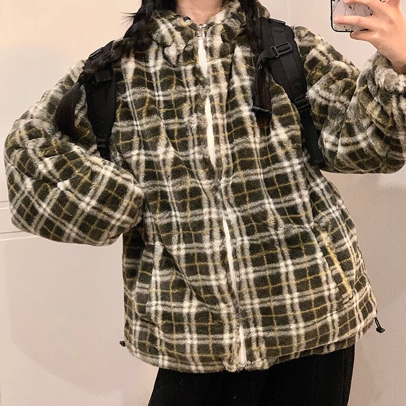 ウィンタージャケット レディース韓国ファッショントレンドウール格子柄ルーズ コットン 冬物 スタイル デーモン61003944474