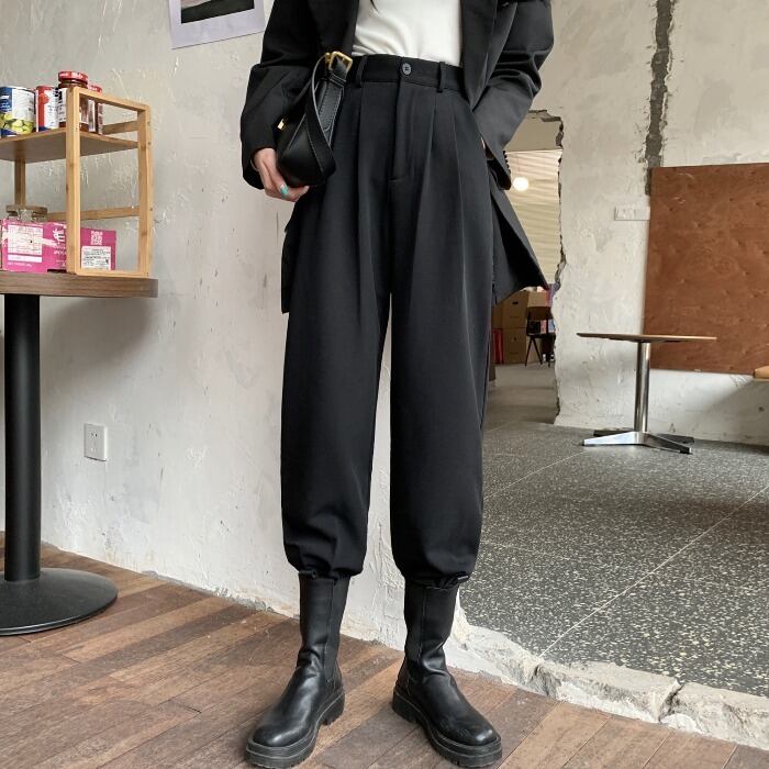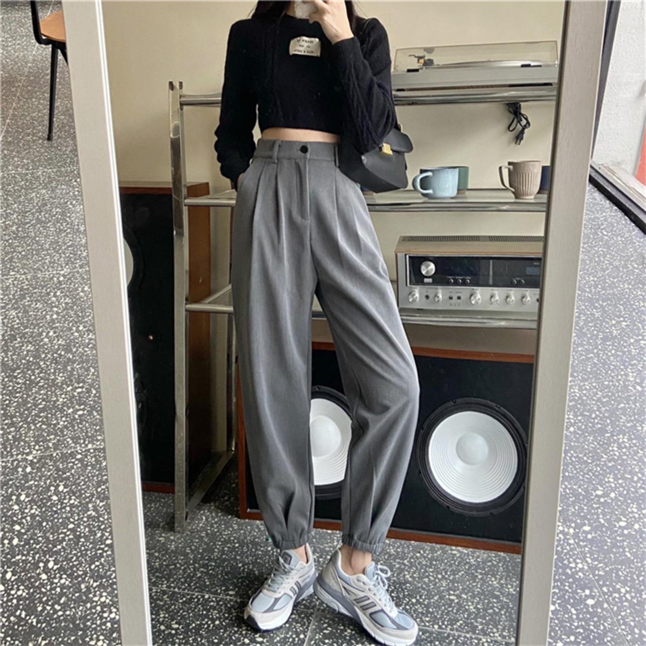秋物ウィンターグレー厚みパンツ ハイウェストルーズカジュアル オータム 冬物 ウエスト CHIL97112154580
