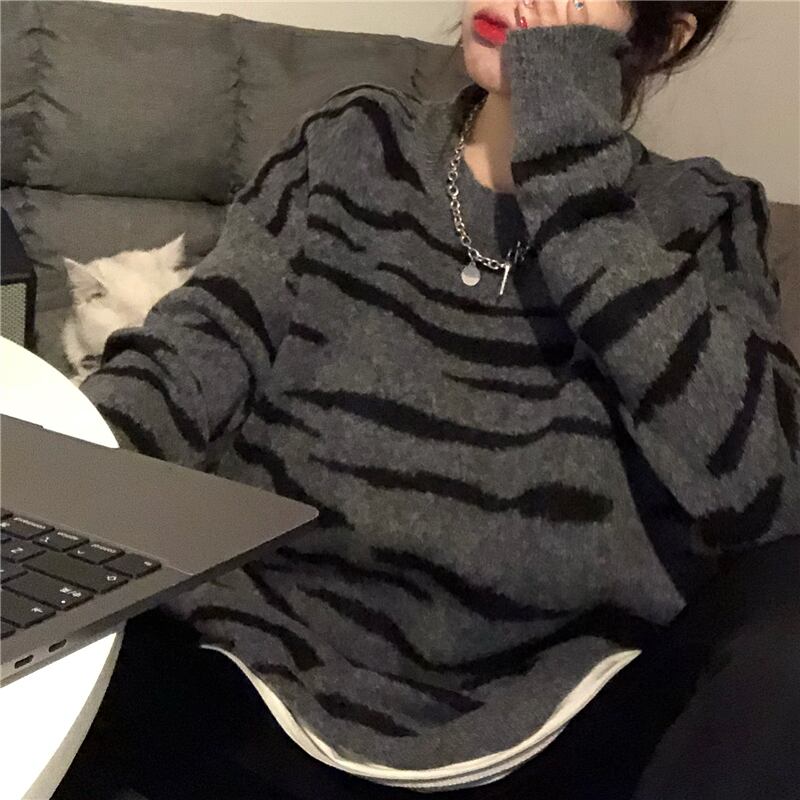スタンダードセーター レディース秋物ウィンター韓国ファッショントレンドパターンラウンドネックコート レトロ オータム 冬物 Oネック ボーイズ スタイル デーモン60018159673