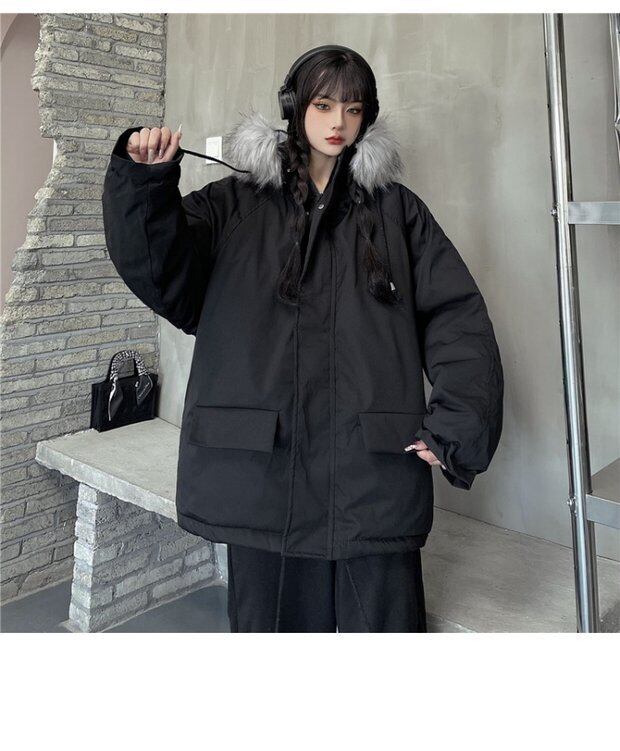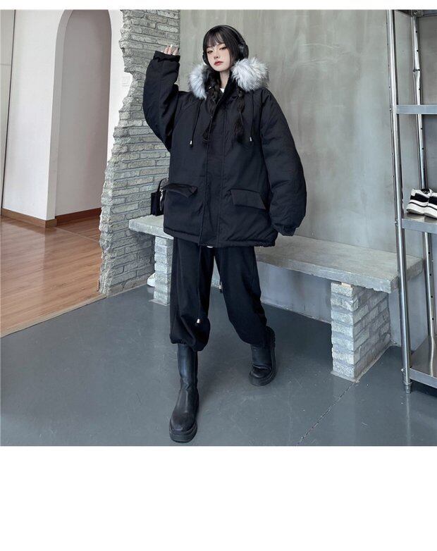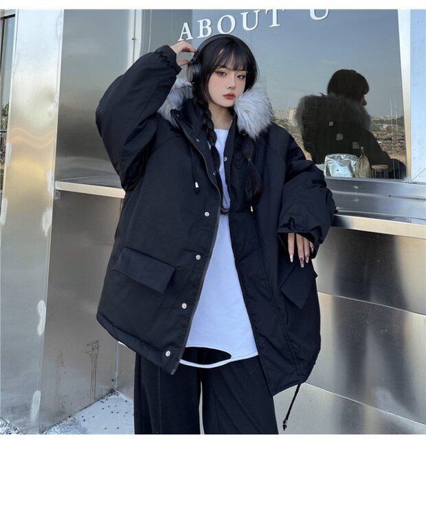 フードジャケット ウィンター韓国ファッションファーカラールーズ コットン 冬物 スタイル デーモン20735528678
