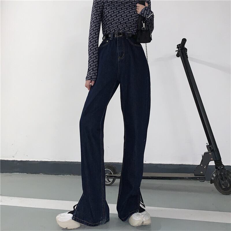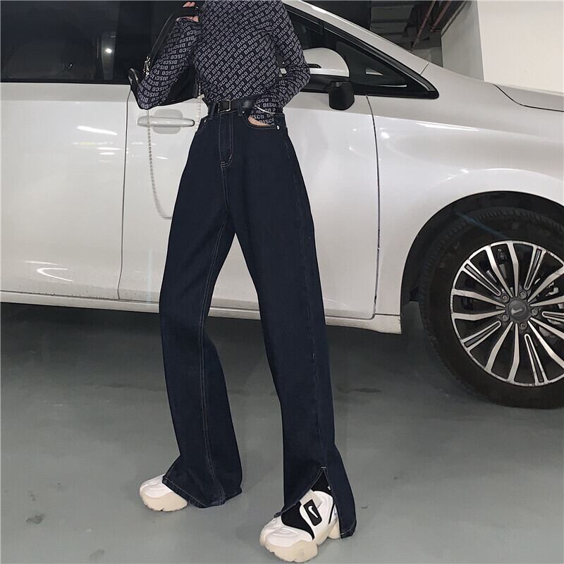 ジーンズ レディース秋物ウィンター韓国ファッショントレンドダークブルールーズハイウェストウェストスリムパンツ オータム 冬物 スタイル ウエスト デーモン81728849606
