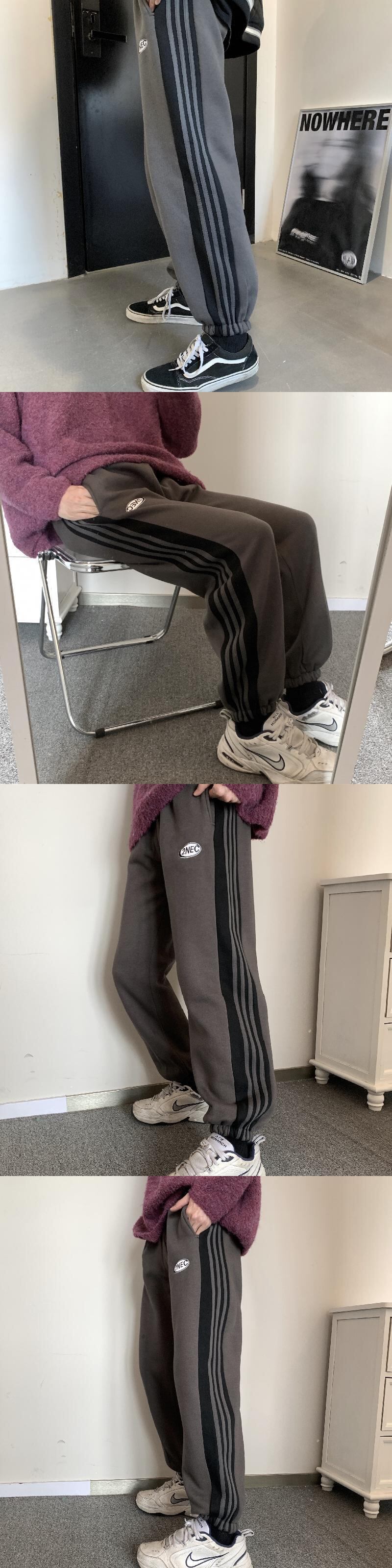 パンツ レディース秋物ウィンター韓国ファッションストライプルーズワイドレッグ レッド 刺繍 オータム 冬物 ワイドパンツ ステッチ デーモン36485503455