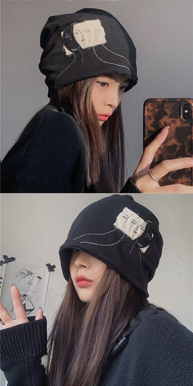 ニットレディース秋物ウィンター韓国ファッショントレンドダーク刺繍ウール 帽子 オータム 冬物 スタイル デーモン13381089559