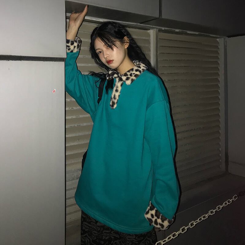 セーター レディース秋物ウィンター韓国ファッショントレンドレオパードプリント柄ルーズ厚みシャツ ジャケット ストリート オータム 冬物 ステッチ デーモン57919231501