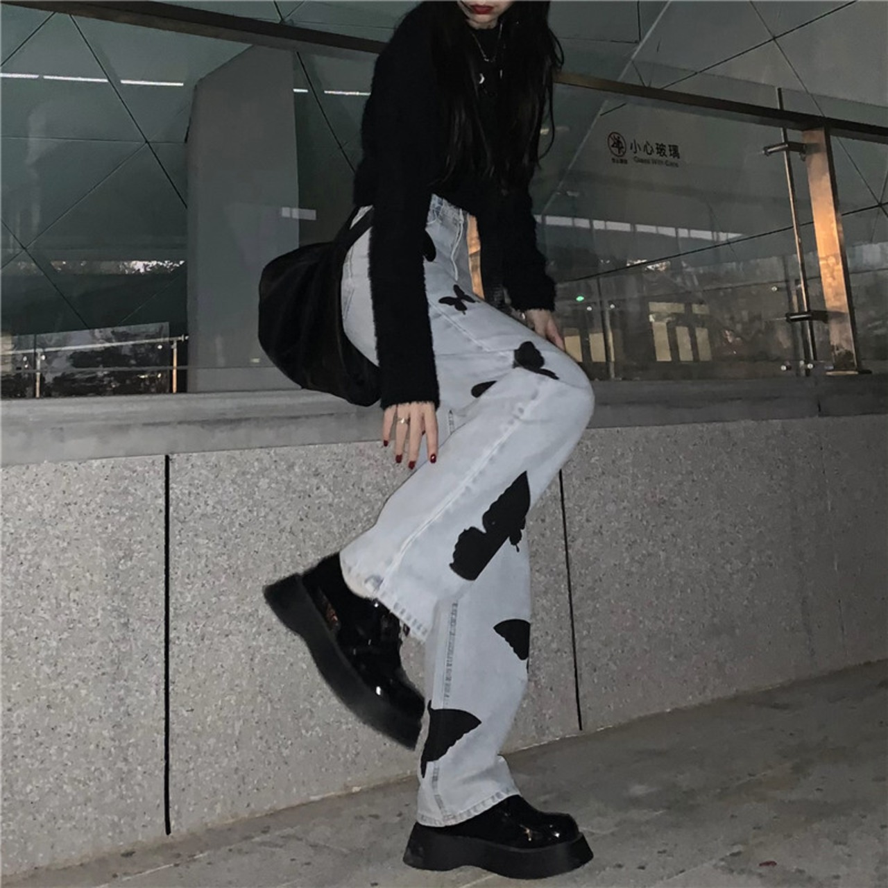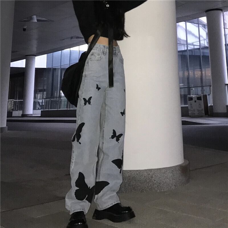 ウェストジーンズ レディース秋物ウィンター韓国ファッショントレンドButterflyデザイン プリント柄ルーズ薄手パンツ オータム 冬物 ボーイズ スタイル ウエスト デーモン27355554223