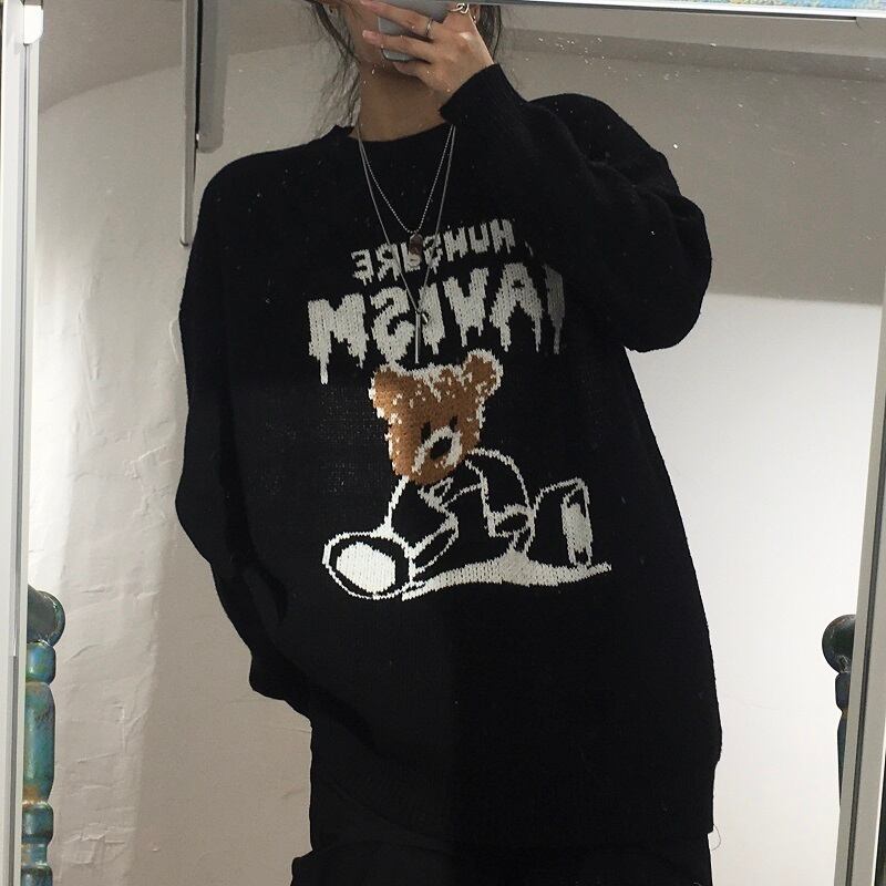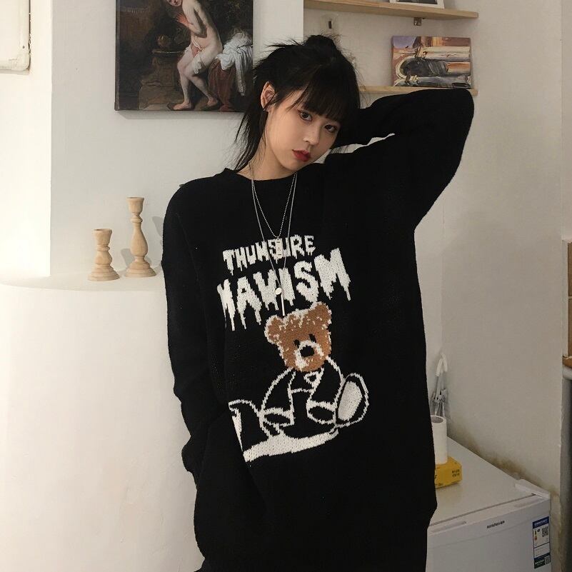 セーター レディーススタンダードラウンドネックプルオーバー ルーズブラック秋物ウィンター長袖スリーブメンズトレンド ロング レトロ 原宿 オータム 冬物 Oネック CHIL80280001162