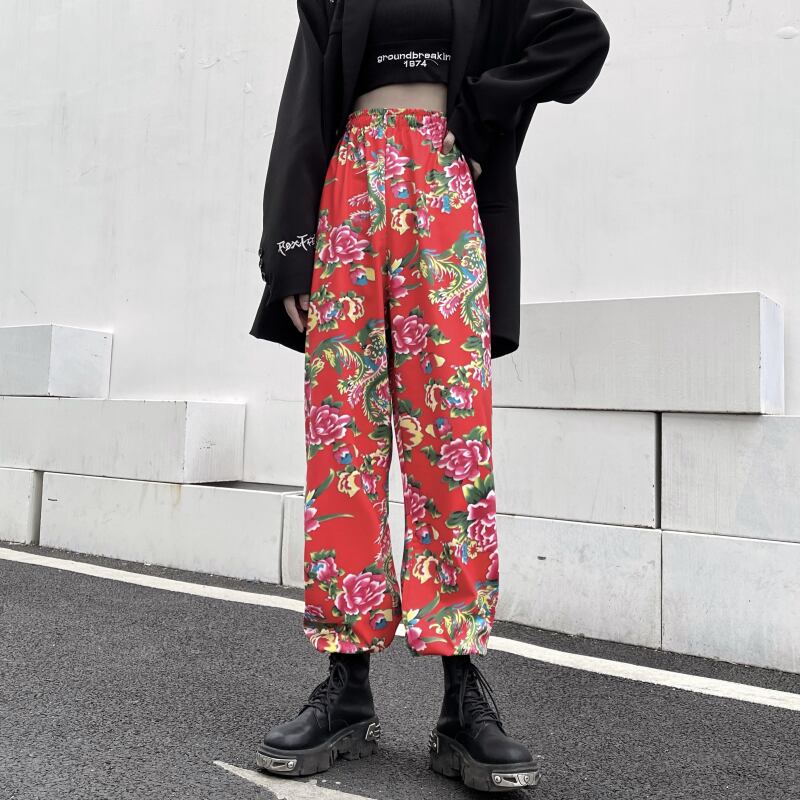 Flowerデザイン パンツ レディース秋物ウィンター韓国ファッショントレンドレギンス ルーズカジュアル ストリート オータム 冬物 フラワーデザイン スタイル デーモン37004935705