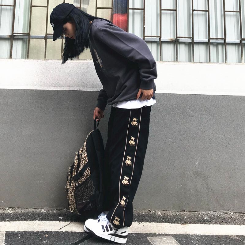 秋物ウィンターカジュアルパンツ レディース韓国ファッショントレンドコーデュロイブラックルーズ オータム 冬物 スタイル デーモン20005816634