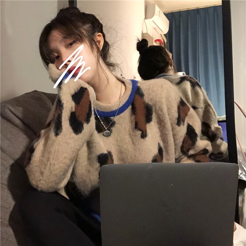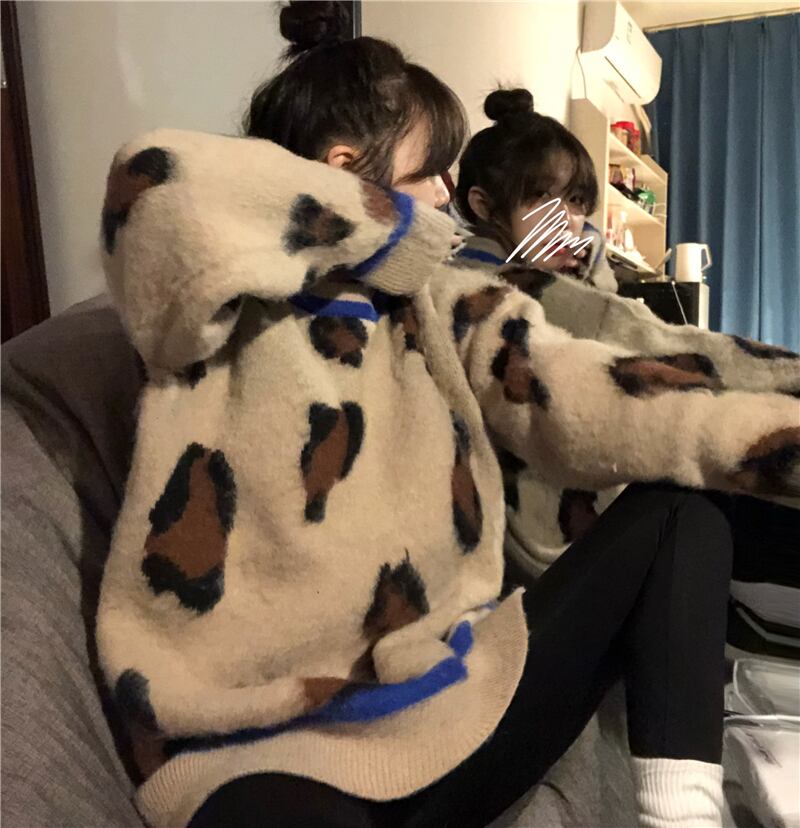 セーター 秋物ウィンター韓国ファッショントレンドレオパードプリント柄ルーズコート オータム 冬物 スタイル デーモン11498688012