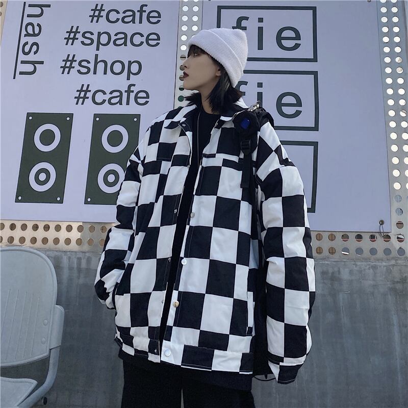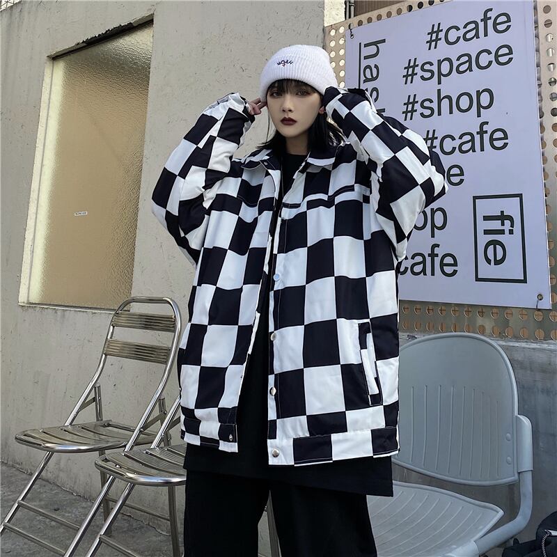 秋物ウィンタージャケット レディース韓国ファッショントレンドブラックホワイトルーズ コットン オータム 冬物 スタイル デーモン18632826818