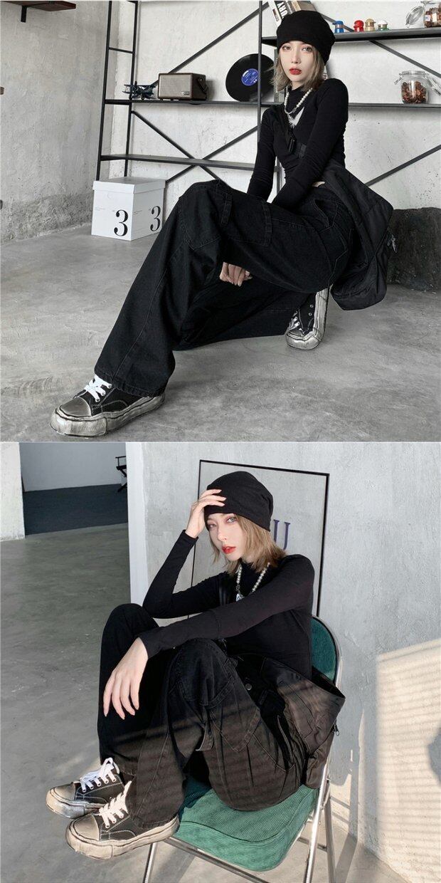 ジーンズ 秋物ウィンター韓国ファッショントレンドブラックスリムルーズハイウェストウェストパンツ レディース オータム 冬物 ボーイズ スタイル ウエスト デーモン41002191367