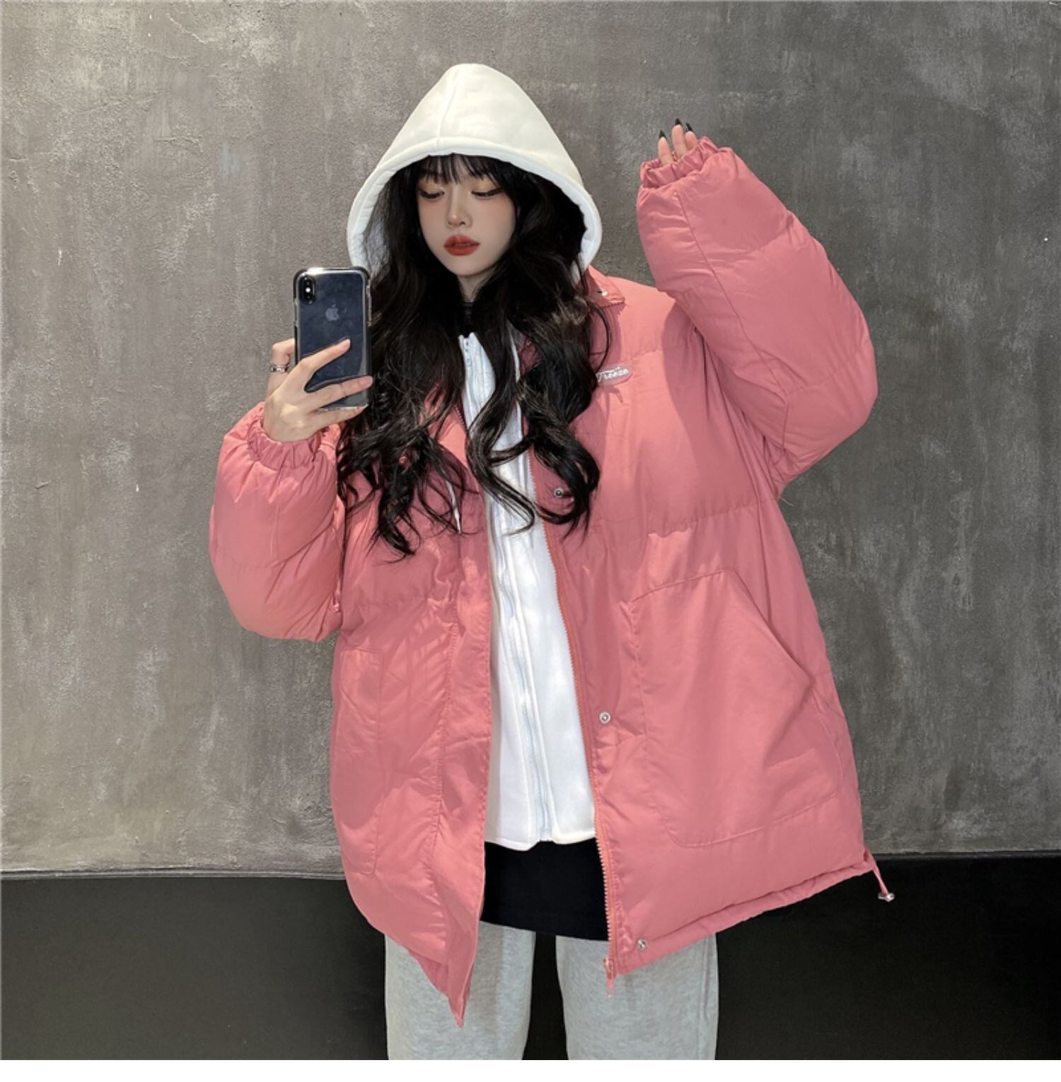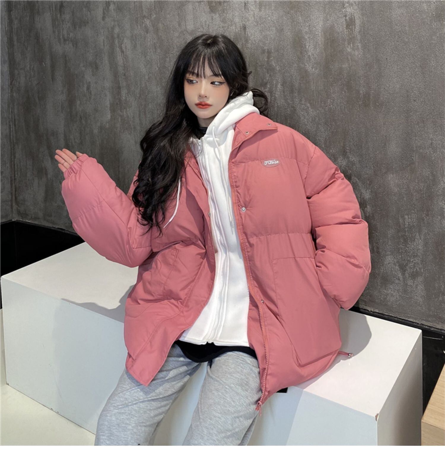 ジャケット レディースウィンター韓国ファッショントレンドフード ピンク コットン 冬物 スタイル デーモン17258596124