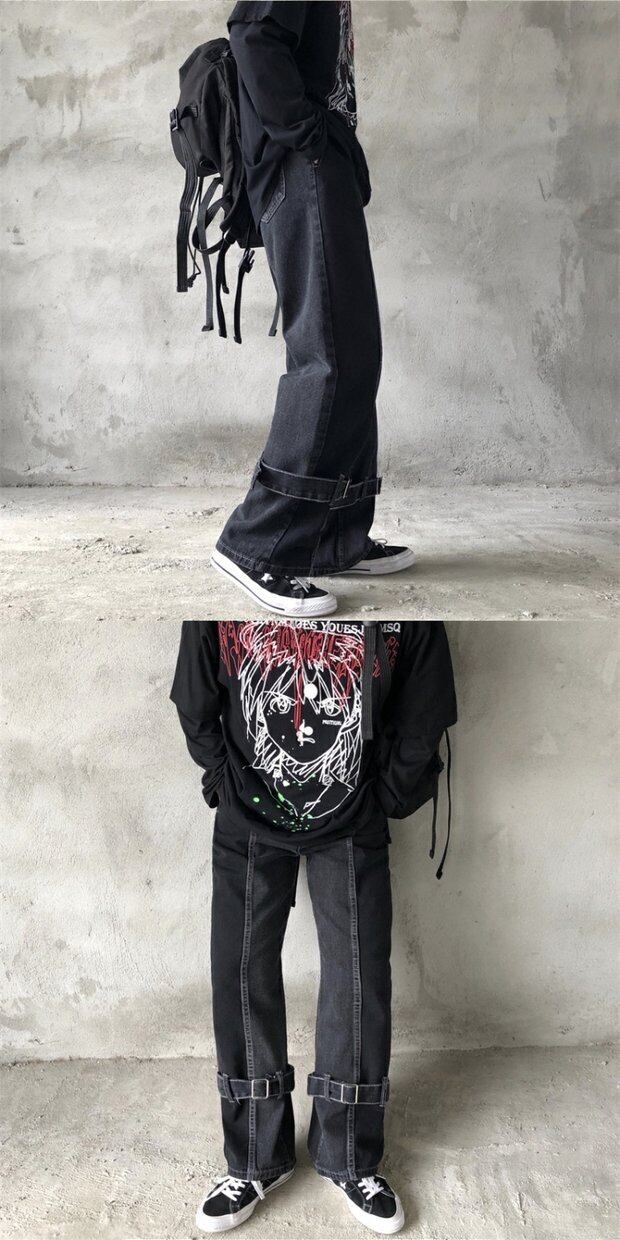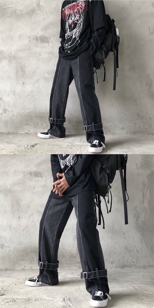 ジーンズ レディース秋物ウィンター韓国ファッショントレンドスタンダードルーズハイウェストウェストワイドレッグパンツ レトロ オータム 冬物 ワイドパンツ スタイル ウエスト デーモン91426694092