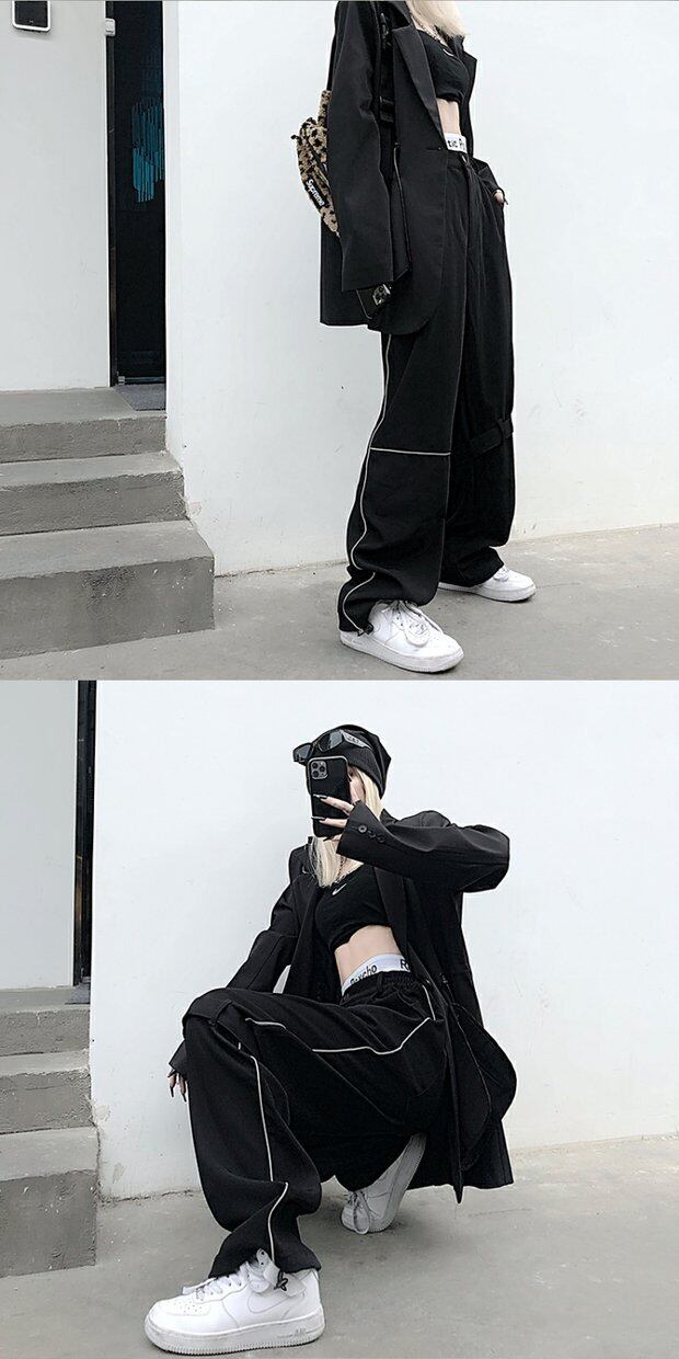 ワイドレッグパンツ 秋物ウィンター韓国ファッショントレンドブラックパンツルーズカジュアルレギンス オータム 冬物 ワイドパンツ ボーイズ スタイル デーモン80158164889