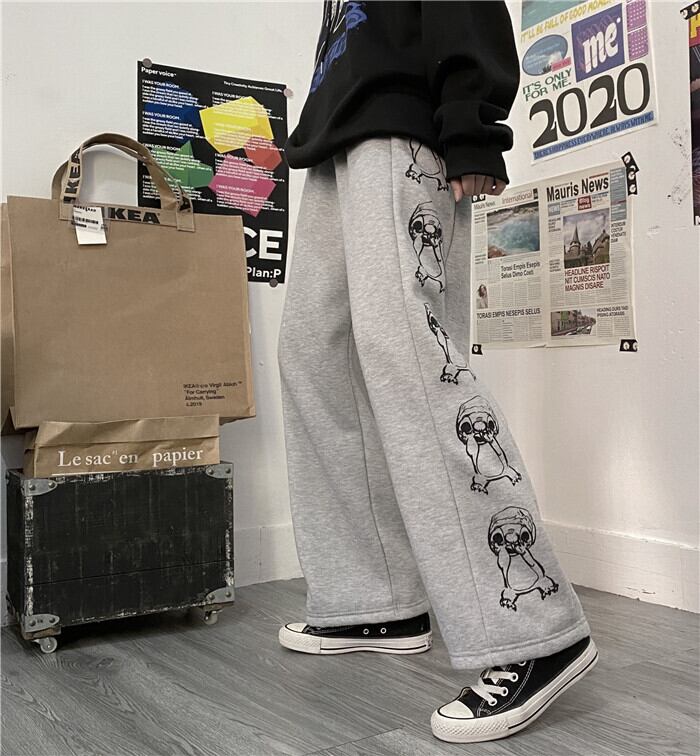 カジュアルパンツ レディース秋物ウィンター韓国ファッションルーズハイウェストウェストワイドレッグ オータム 冬物 ワイドパンツ スタイル ウエスト デーモン81011995371