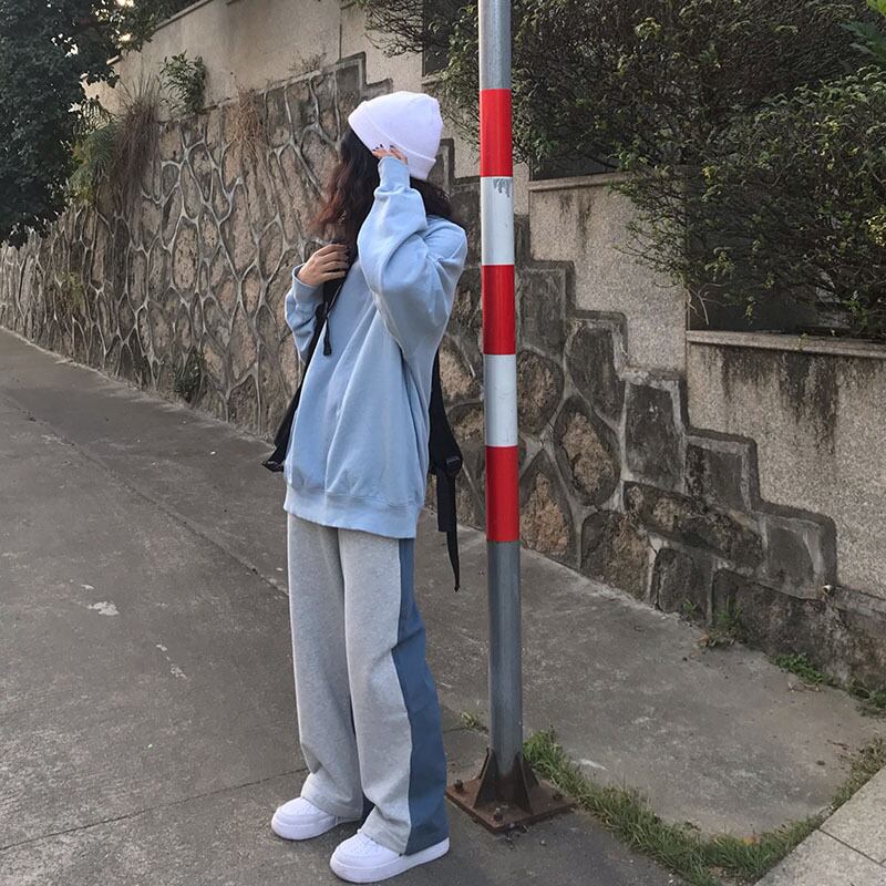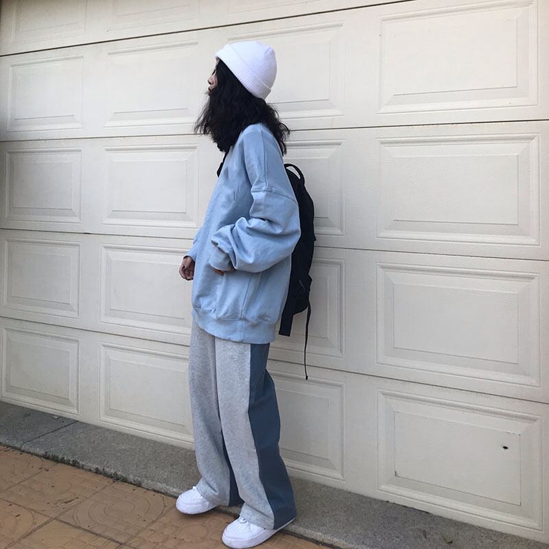 色:スカイブルーのセーターH175,ブルーファイトグレーパンツS,ブルーファイトグレーパンツM,ブルーファイトグレーパンツL