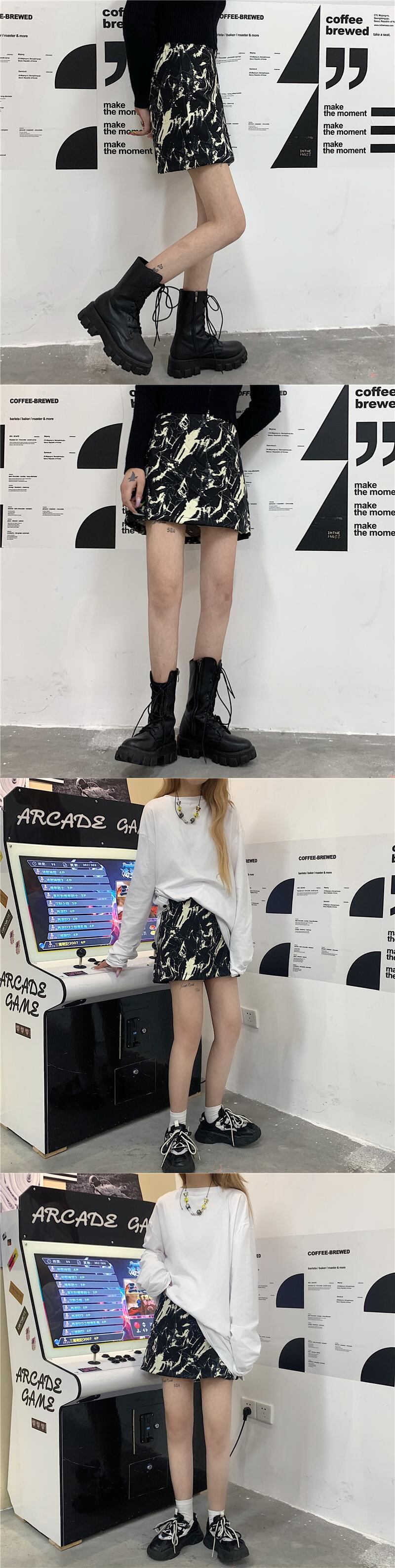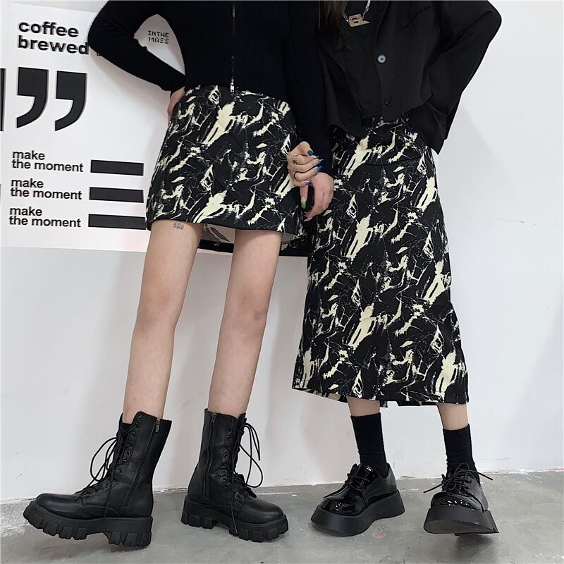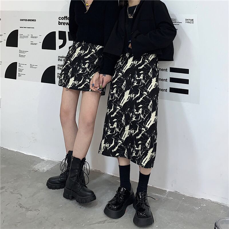 スカート レディース韓国ファッションスタンダードトレンドダークショートAライン レトロ ミドル丈 CHIL5960771686