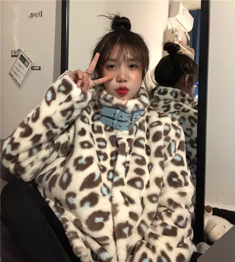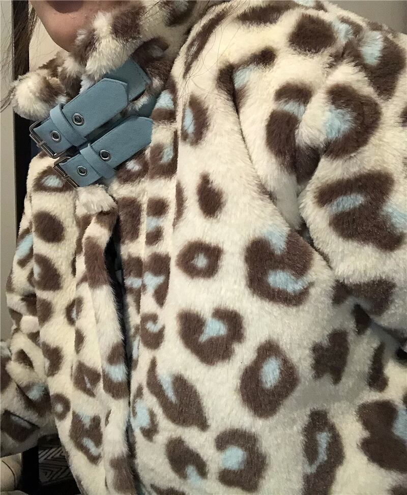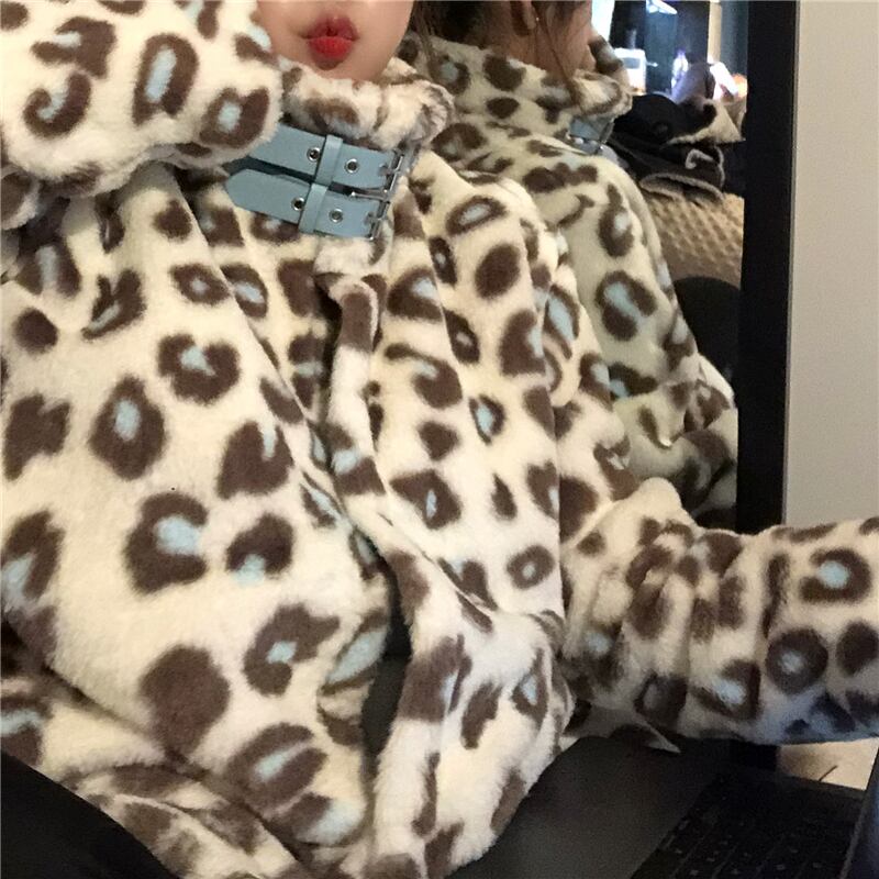 ウィンタージャケット レオパードプリント柄レザーバックルスタイルルーズカジュアルトップス 冬物 CHIL57126581369