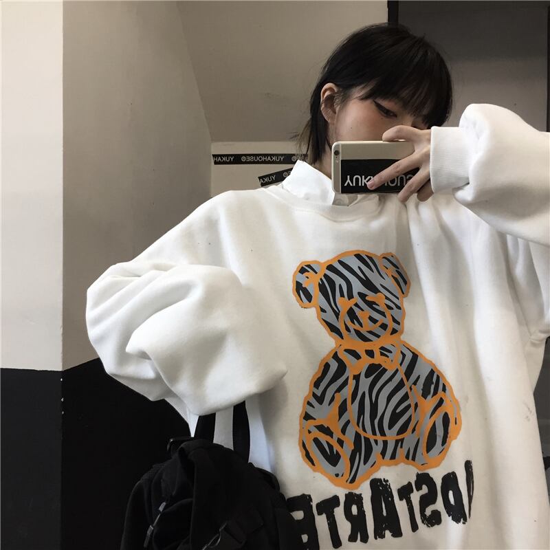 ラウンドネックセーター レディース秋物ウィンター韓国ファッショントレンドプリント柄厚みルーズコート オータム 冬物 Oネック スタイル デーモン66173759420