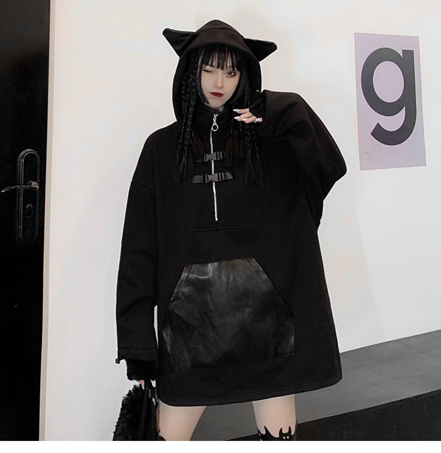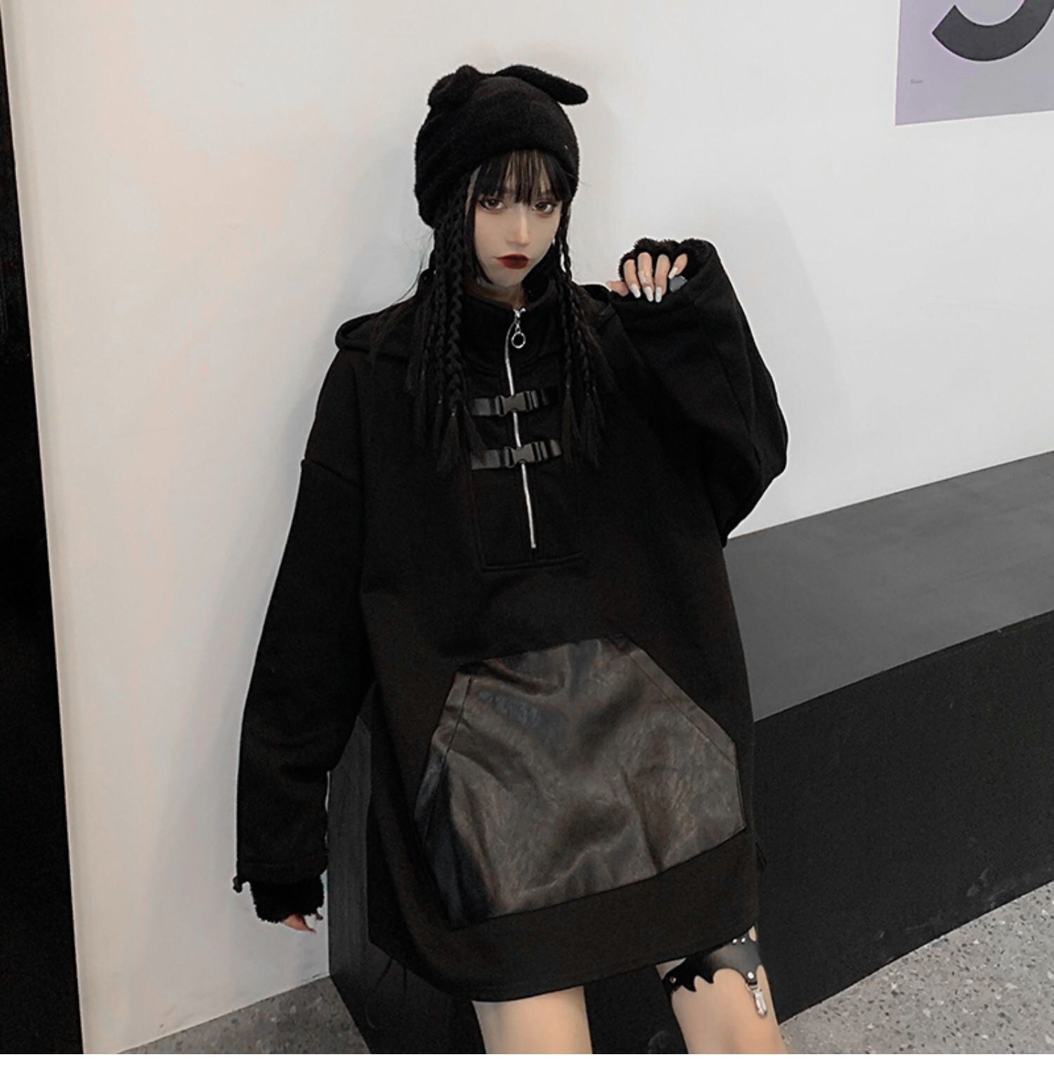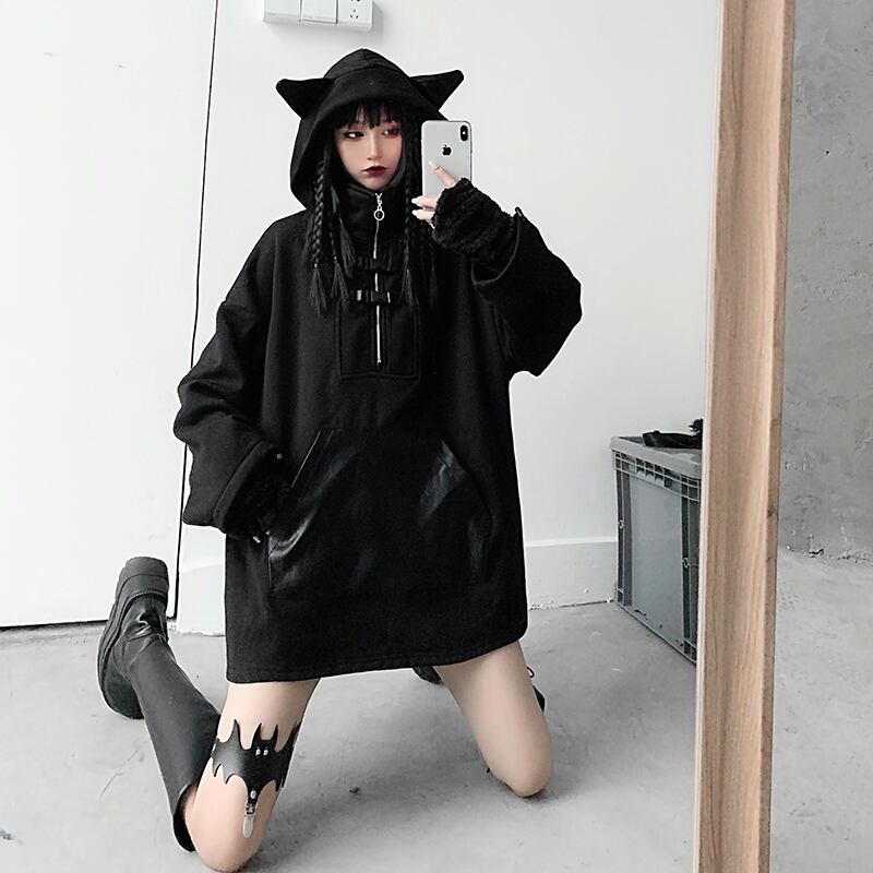 セーター レディース秋物ウィンター韓国ファッショントレンドダークフードブラックジャケット オータム 冬物 ステッチ ボーイズ スタイル デーモン58872812146