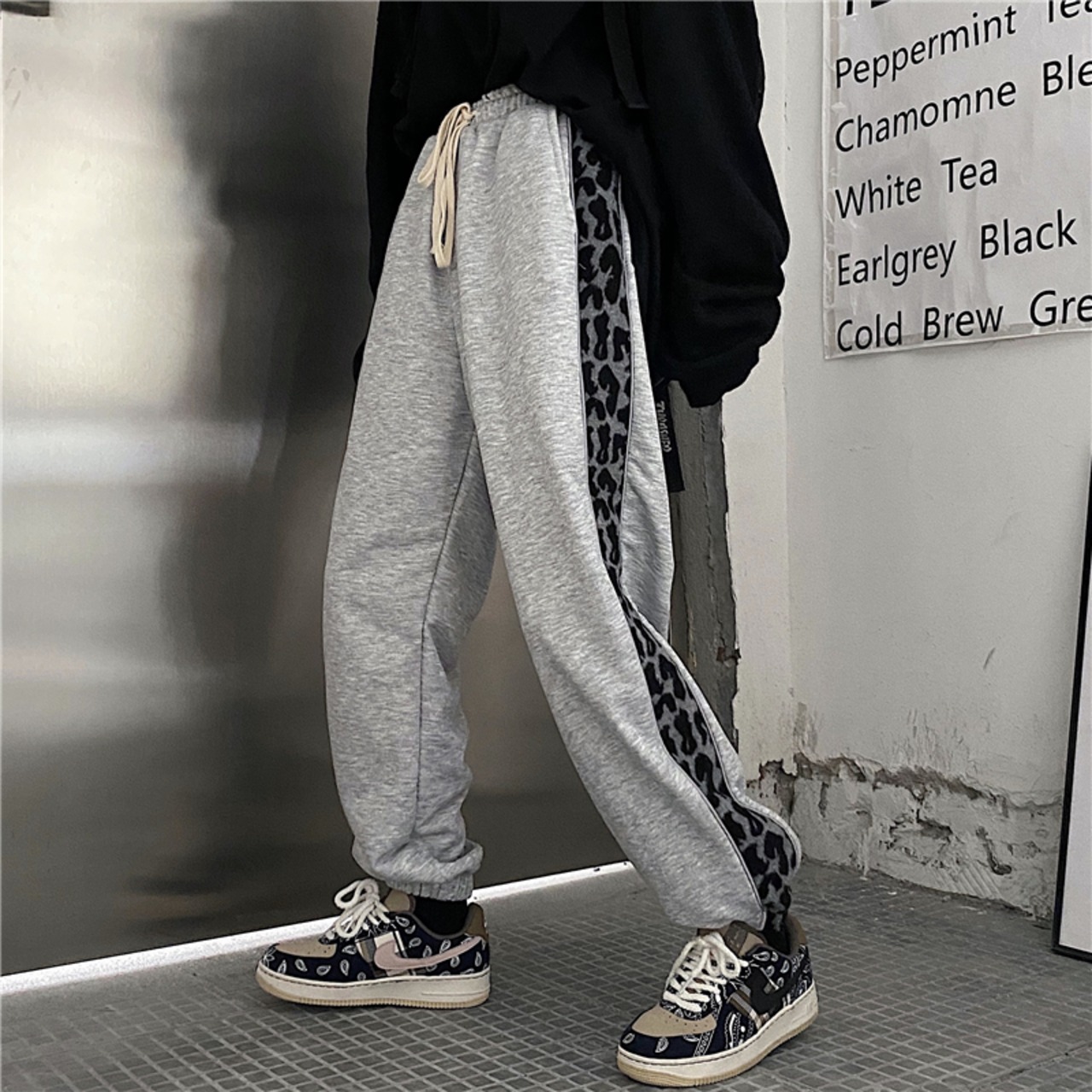 秋物ウィンター厚みパンツ ルーズ薄手ウェストレオパードプリント柄カジュアル ストリート オータム 冬物 ウエスト CHIL25148183057