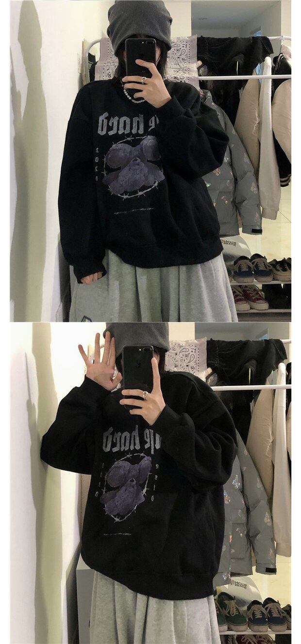 ラウンドネック厚みセーター レディース秋物ウィンター韓国ファッショントレンドスタンダードダークルーズコート レトロ オータム 冬物 Oネック スタイル デーモン71191862744