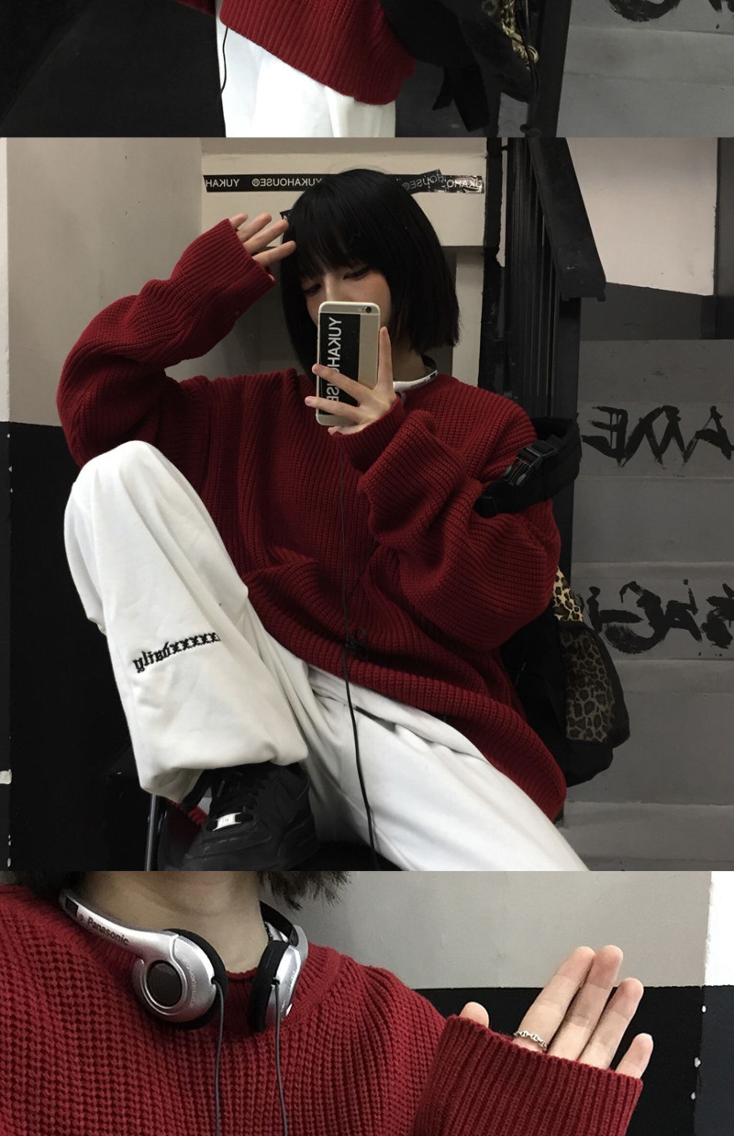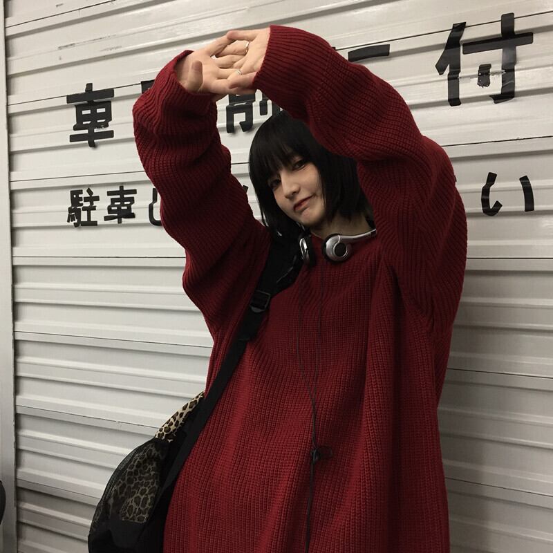 セーター レディース秋物ウィンター韓国ファッショントレンドレッドラウンドネックルーズコート オータム 冬物 Oネック スタイル デーモン56618105194