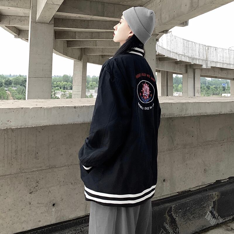 ジャケット レディーススプリング韓国ファッショントレンドルーズ刺繍ブラックトップス 春物 スタイル CHIL13158499780