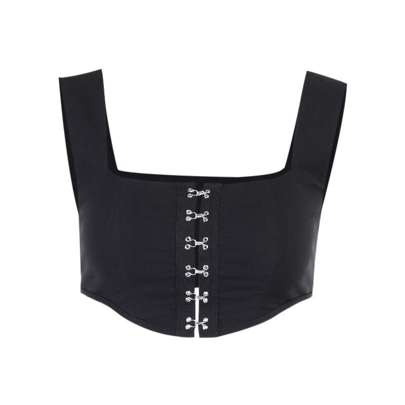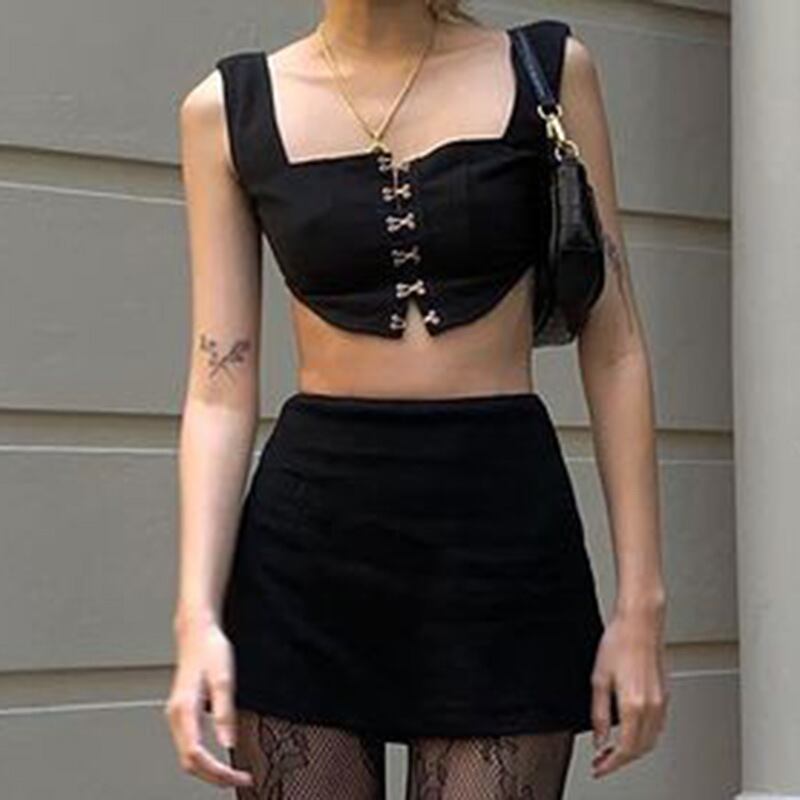 ダークボタンノースリーブショートトップス スプリング夏服 春物 夏物 ヨーロピアン YU28491890885