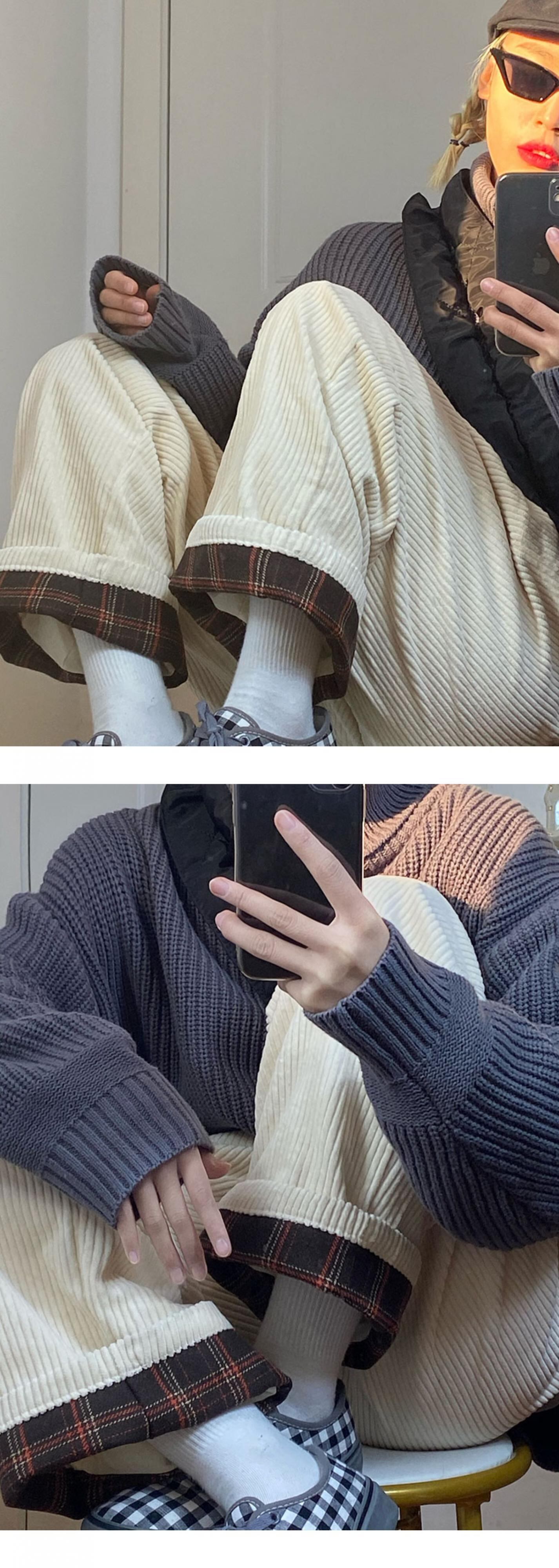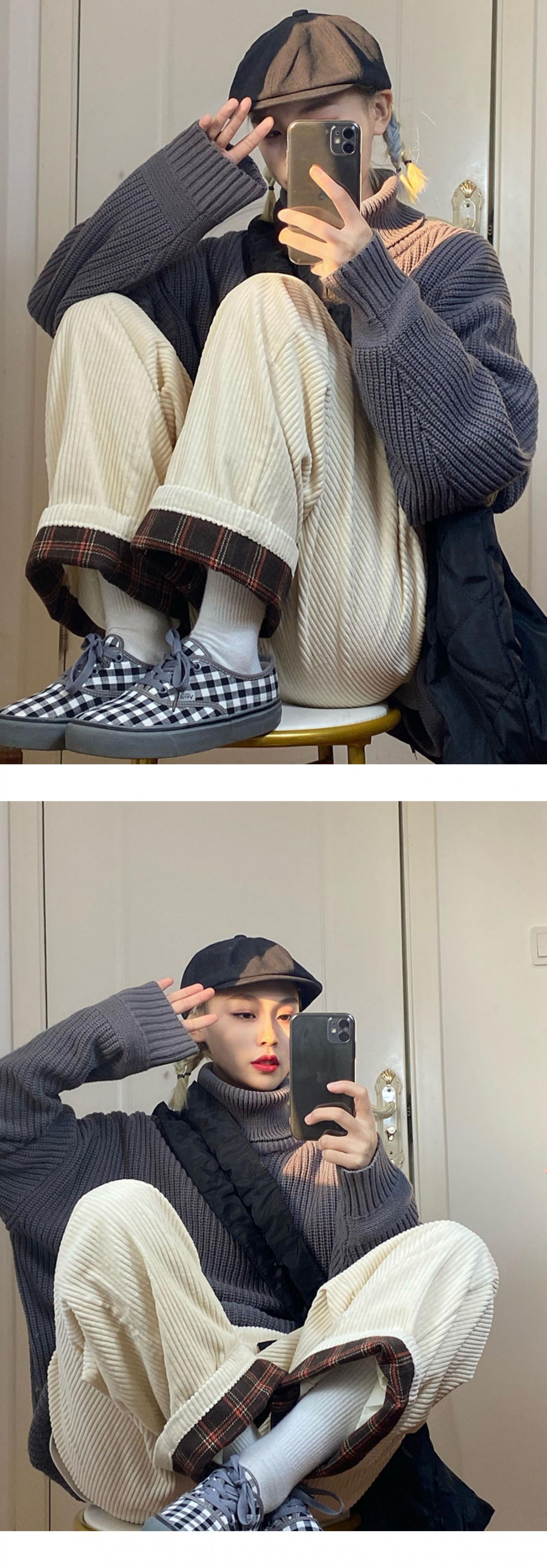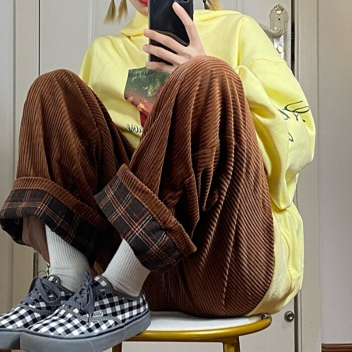 コーデュロイカジュアルパンツ 秋物ウィンタースタイル韓国ファッションスタンダードルーズ レトロ オータム 冬物 デーモン20321636585