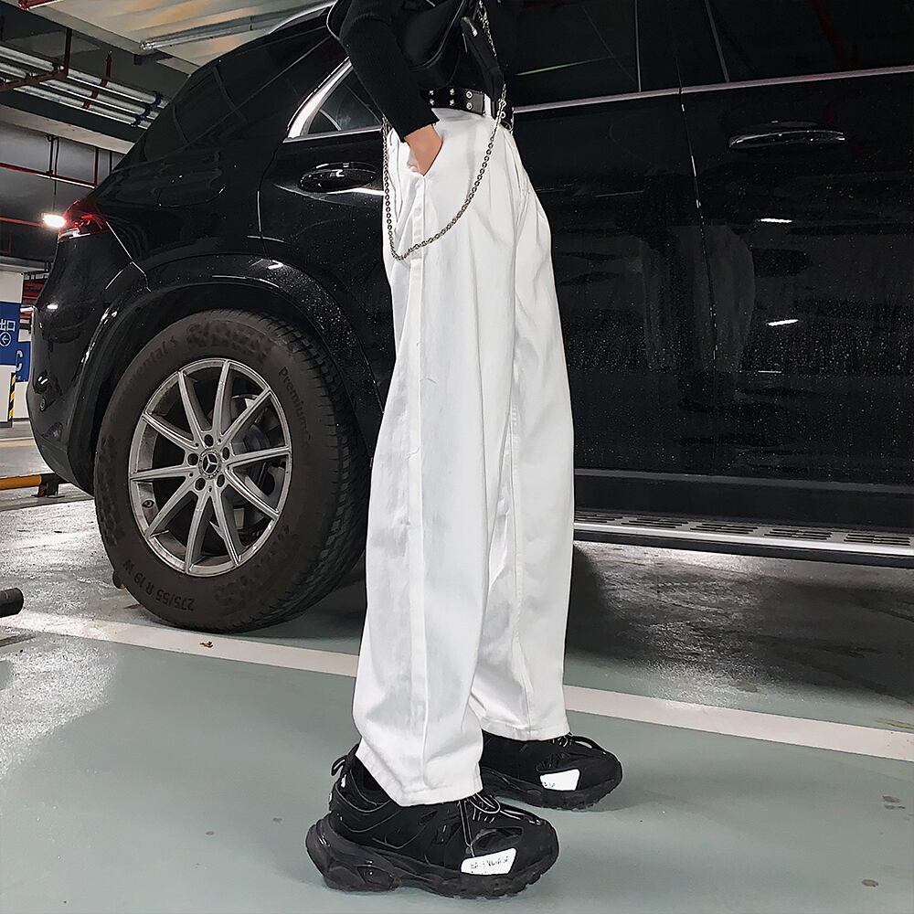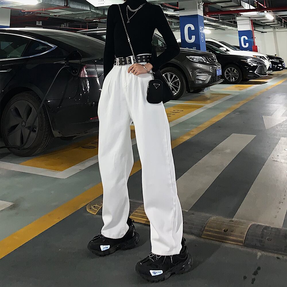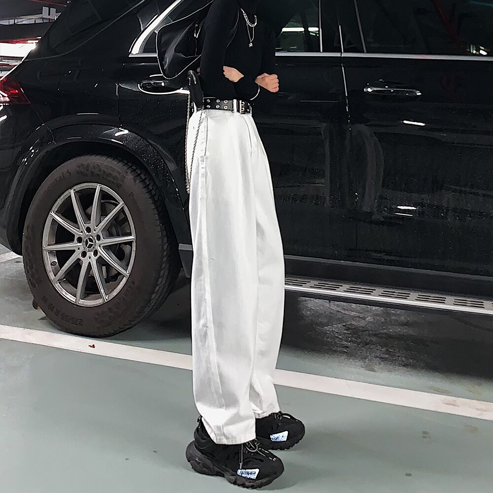 ホワイトジーンズ レディース秋物ウィンター韓国ファッショントレンドワイドレッグパンツ ハイウェストウェストルーズ ストリート オータム 冬物 ワイドパンツ スタイル ウエスト デーモン25658146311