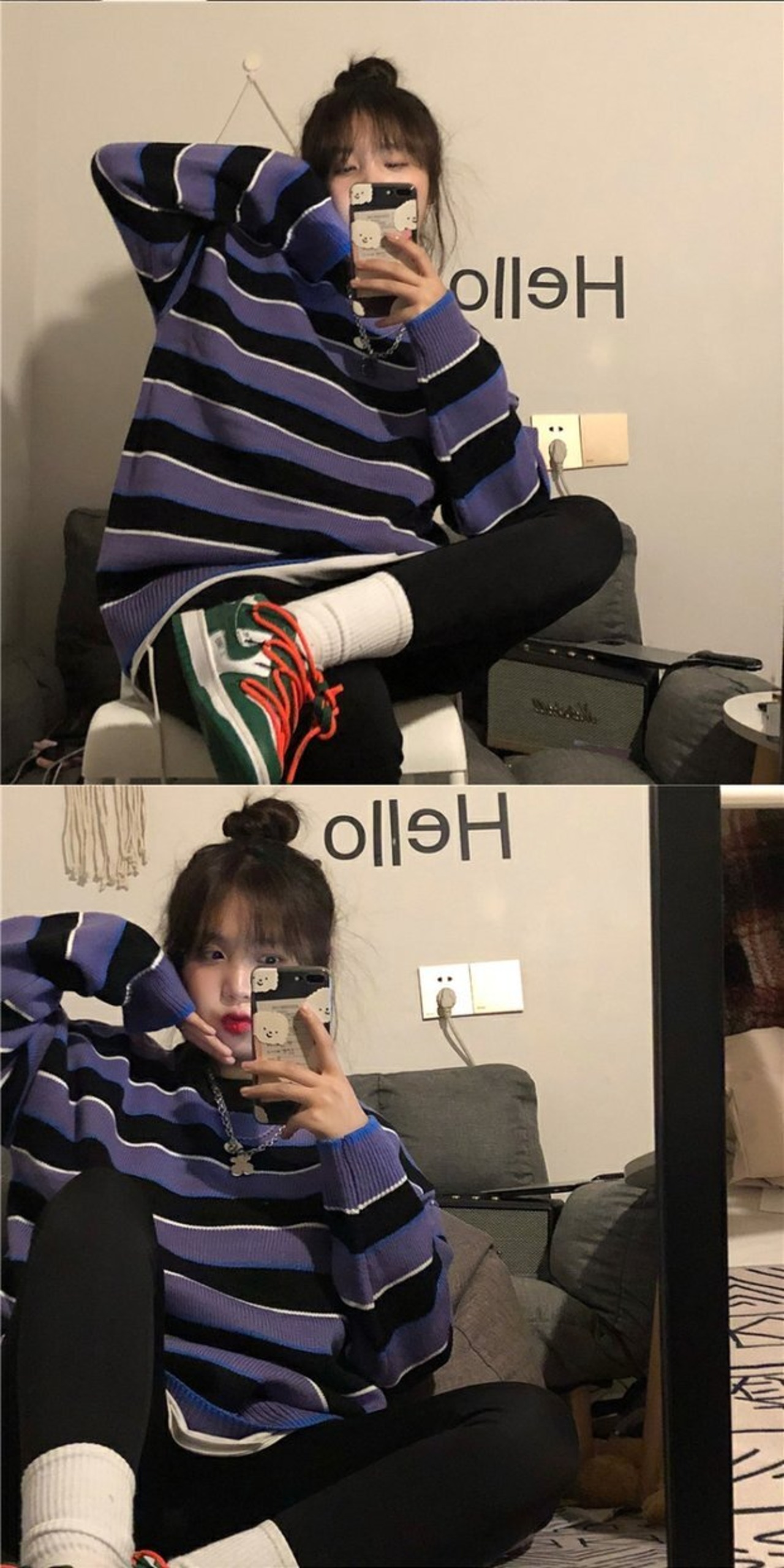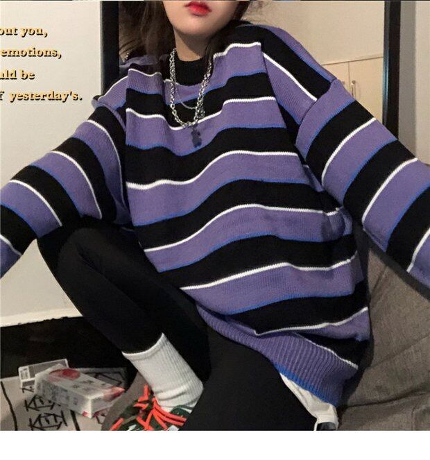 セーター 秋物ウィンターレディース韓国ファッショントレンドストライプラウンドネックルーズプルオーバー オータム 冬物 Oネック スタイル デーモン52775235980