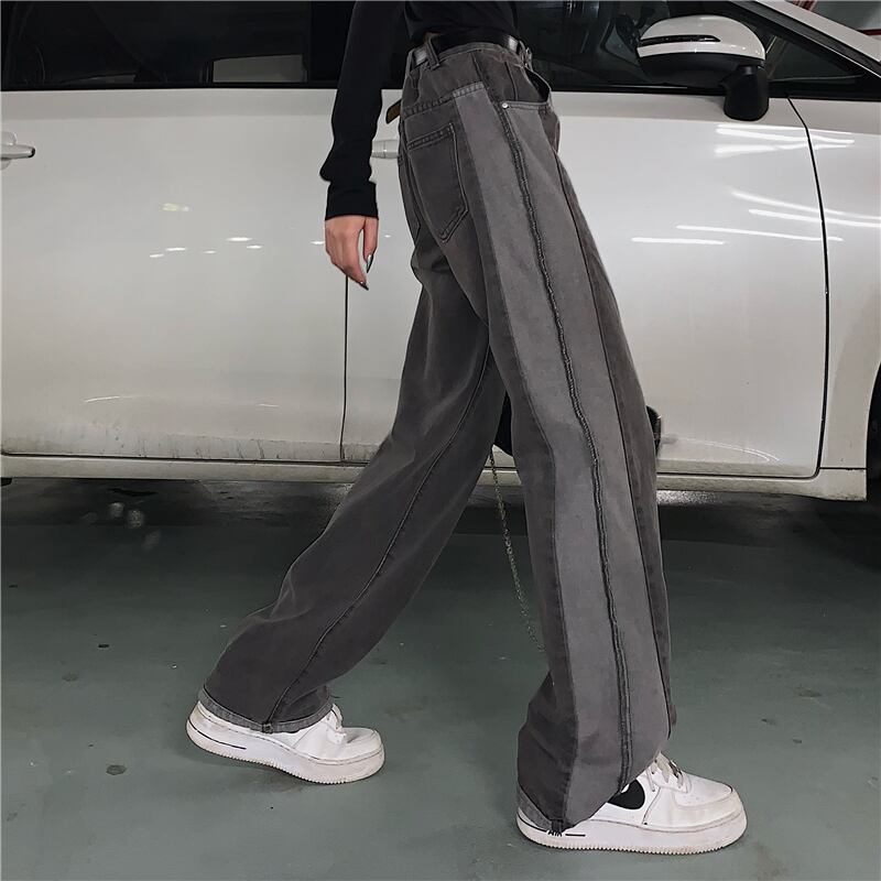パンツ スプリングスタンダードルーズブラックグレー レトロ 春物 CHIL6861859969