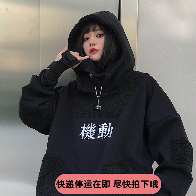ブラックセーター ウィンタートレンドスタイル厚みウールトップス フードジャケット 原宿 冬物 ステッチ CHIL55578446320