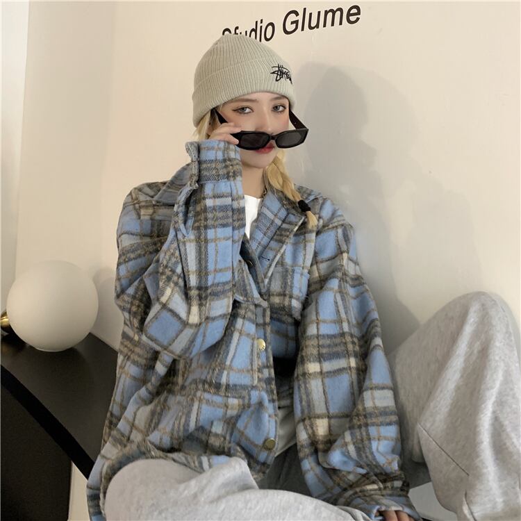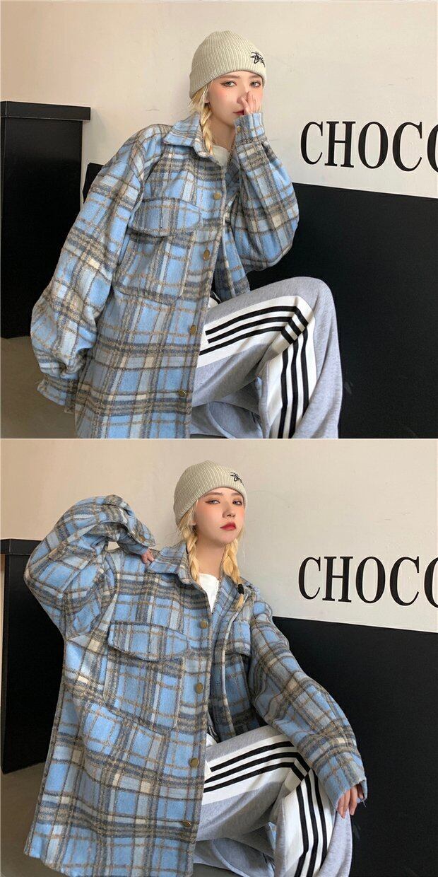 シャツ レディース秋物ウィンター韓国ファッションスタンダード格子柄ルーズジャケット ロング レトロ オータム 冬物 ボーイズ 長袖 デーモン7532059323