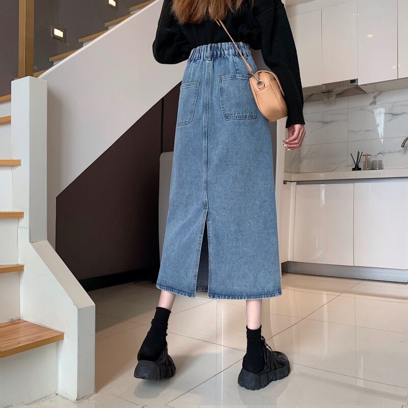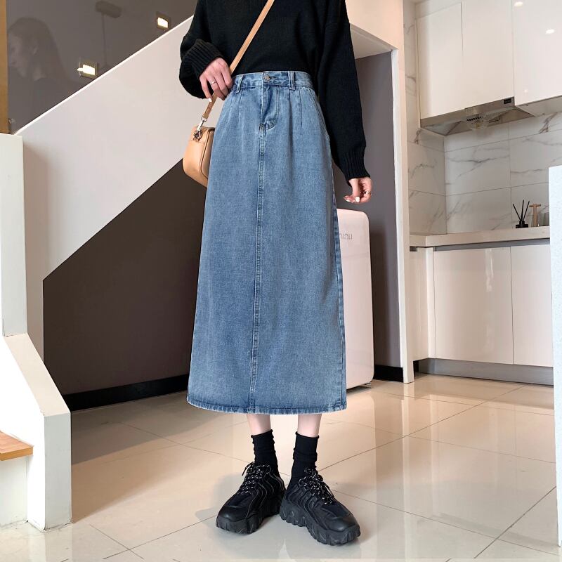 スカート 秋物ウィンターハイウェストAライン薄手ブルー オータム 冬物 ウエスト ミドル丈 CHIL45554731952