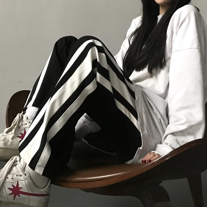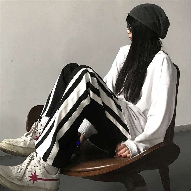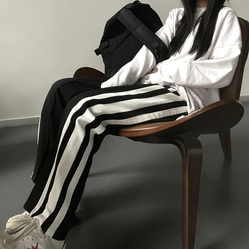 カジュアルパンツ レディース秋物ウィンター韓国ファッショントレンドストライプルーズ オータム 冬物 スタイル デーモン54415859234