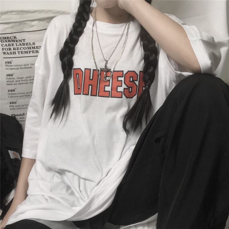 スプリング夏服レディース韓国ファッショントレンドスタイルスタンダードプリントルーズTシャツ レトロ 原宿 春物 夏物 CHIL69638972392