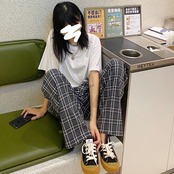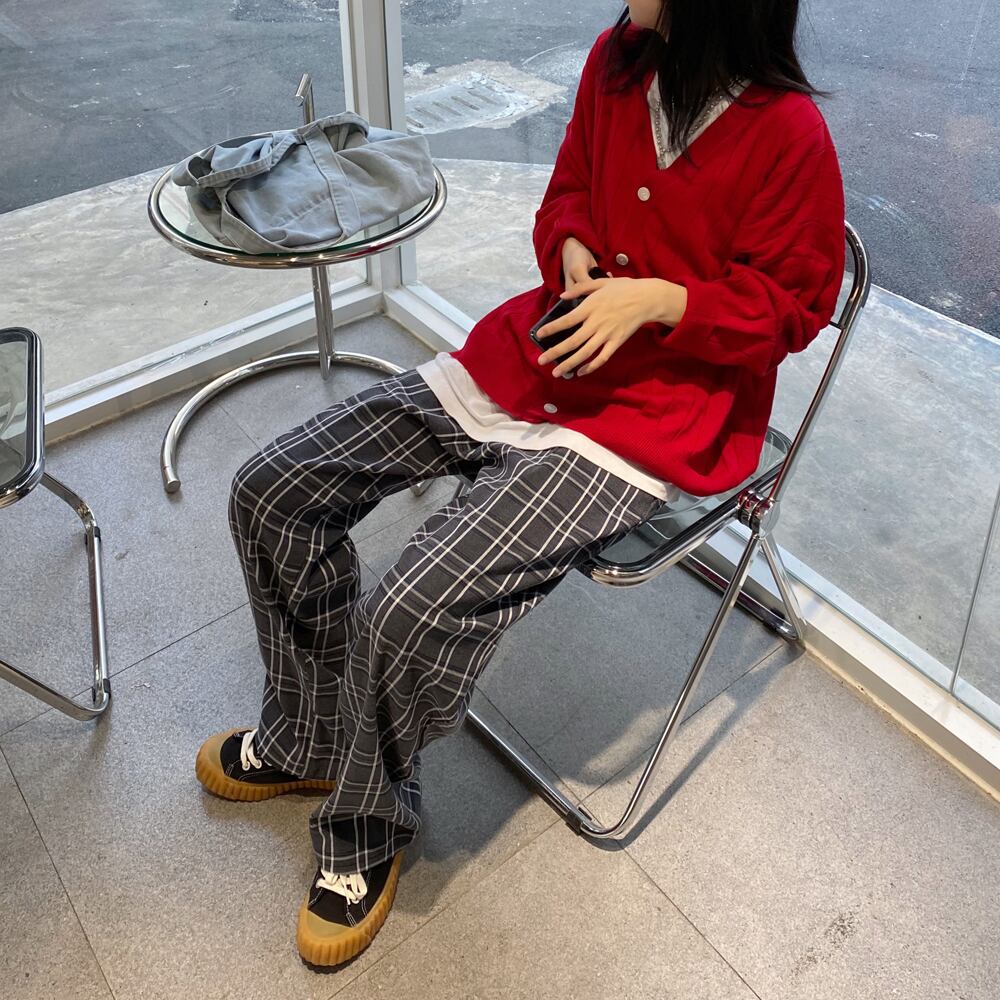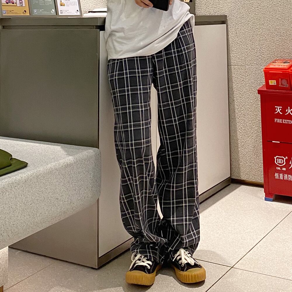 パンツ スプリング韓国ファッションFlowerデザイン グレー格子柄カジュアルルーズ 春物 フラワーデザイン スタイル CHIL64940470133