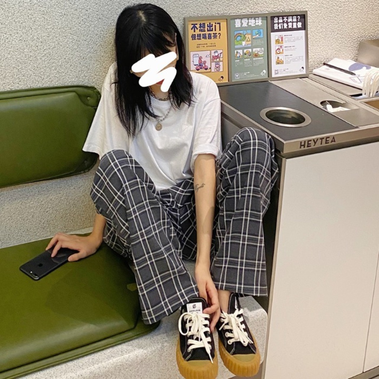 色:チェック柄パンツ