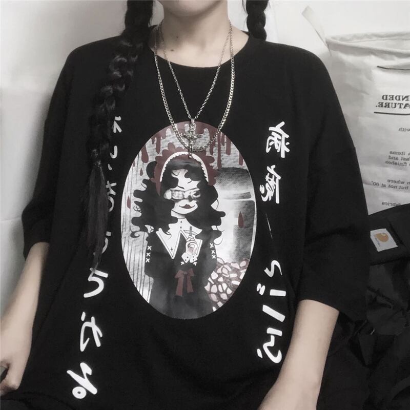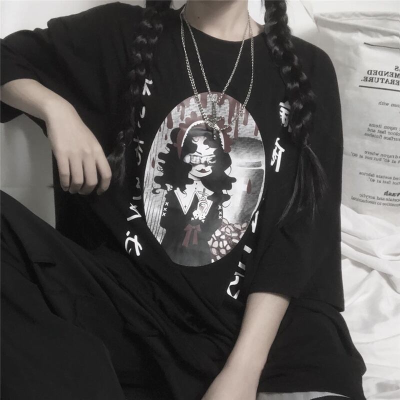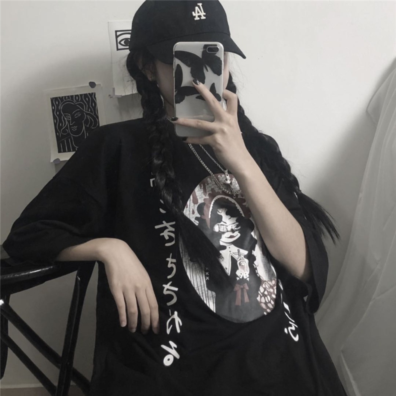 スプリング夏服韓国ファッショントレンドスタイルダークプリント柄ルーズ半袖スリーブTシャツレディース ショート ハーフスリーブ 原宿 春物 夏物 CHIL40500502730