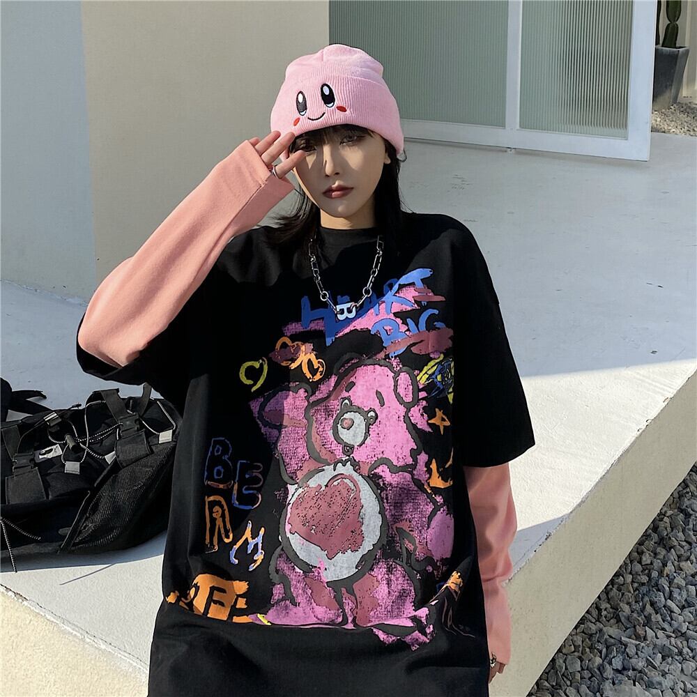 トップス レディーススプリングルーズプリントTシャツシャツ ゆったり ロング 春物 長袖 CHIL56704603858