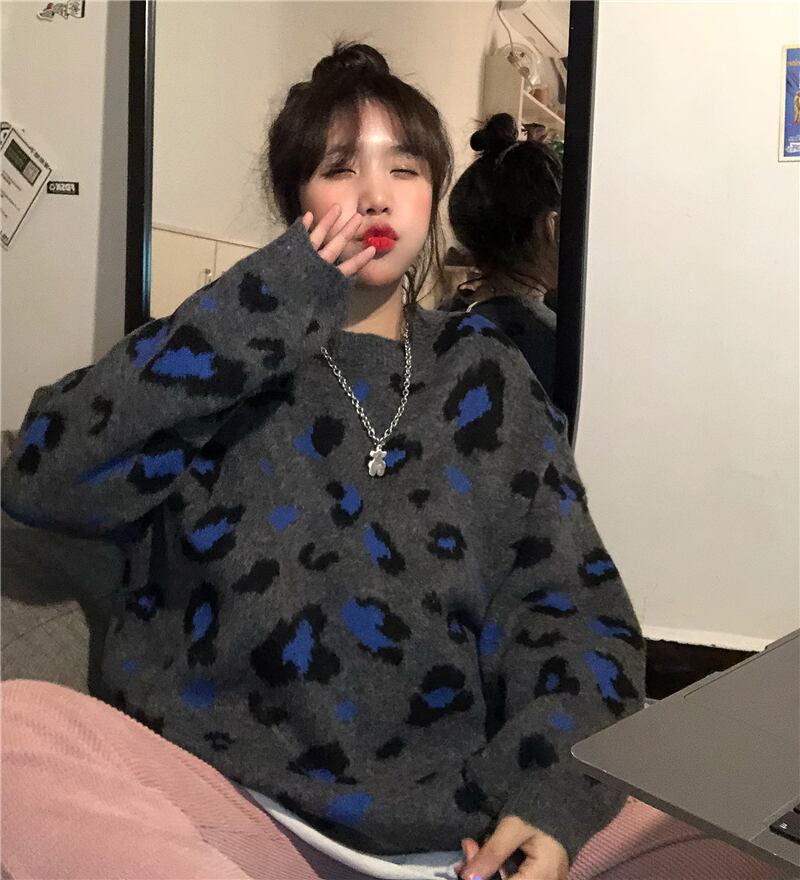 セーター スタイル秋物ウィンター韓国ファッショントレンドレオパードプリント柄ルーズラウンドネックレディース オータム 冬物 Oネック デーモン55762002393