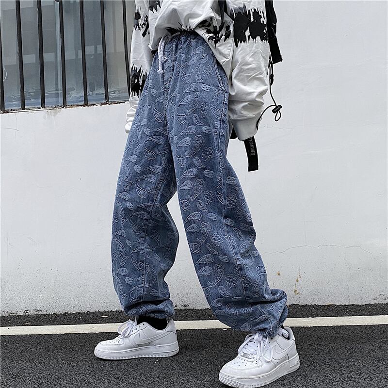 ギャザージーンズ レディース秋物ウィンター韓国ファッショントレンドFlowerデザイン ルーズハイウェストウェストカジュアルパンツ ストリート オータム 冬物 フラワーデザイン スタイル ウエスト デーモン60081224090