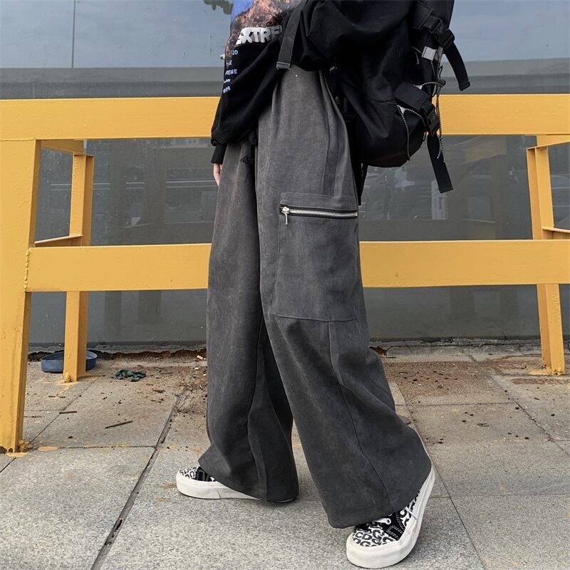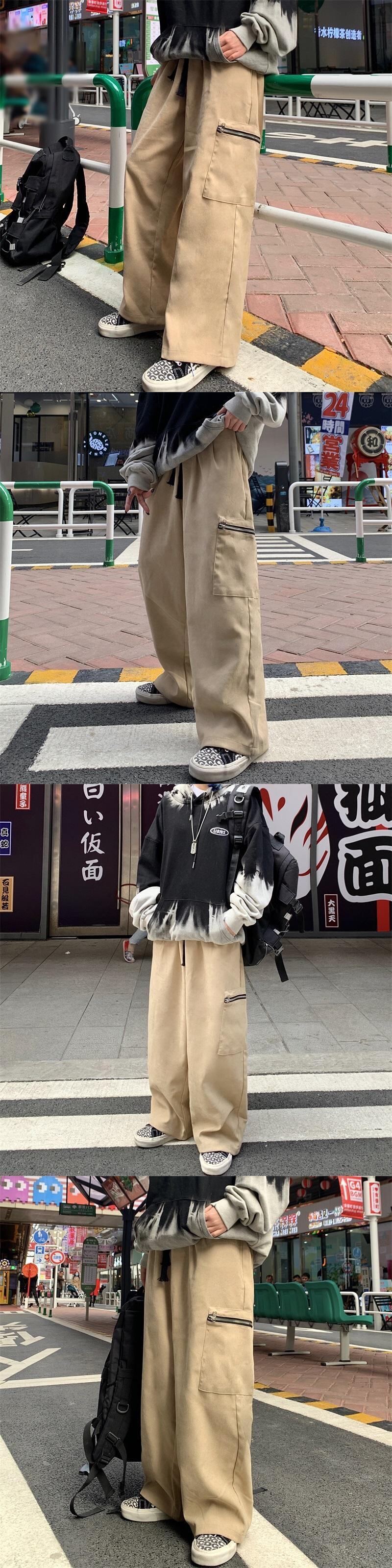 秋物ウィンター韓国ファッショントレンドスタンダードジッパーポケットカジュアルパンツ メンズレディースルーズ レトロ オータム 冬物 スタイル デーモン65095044415