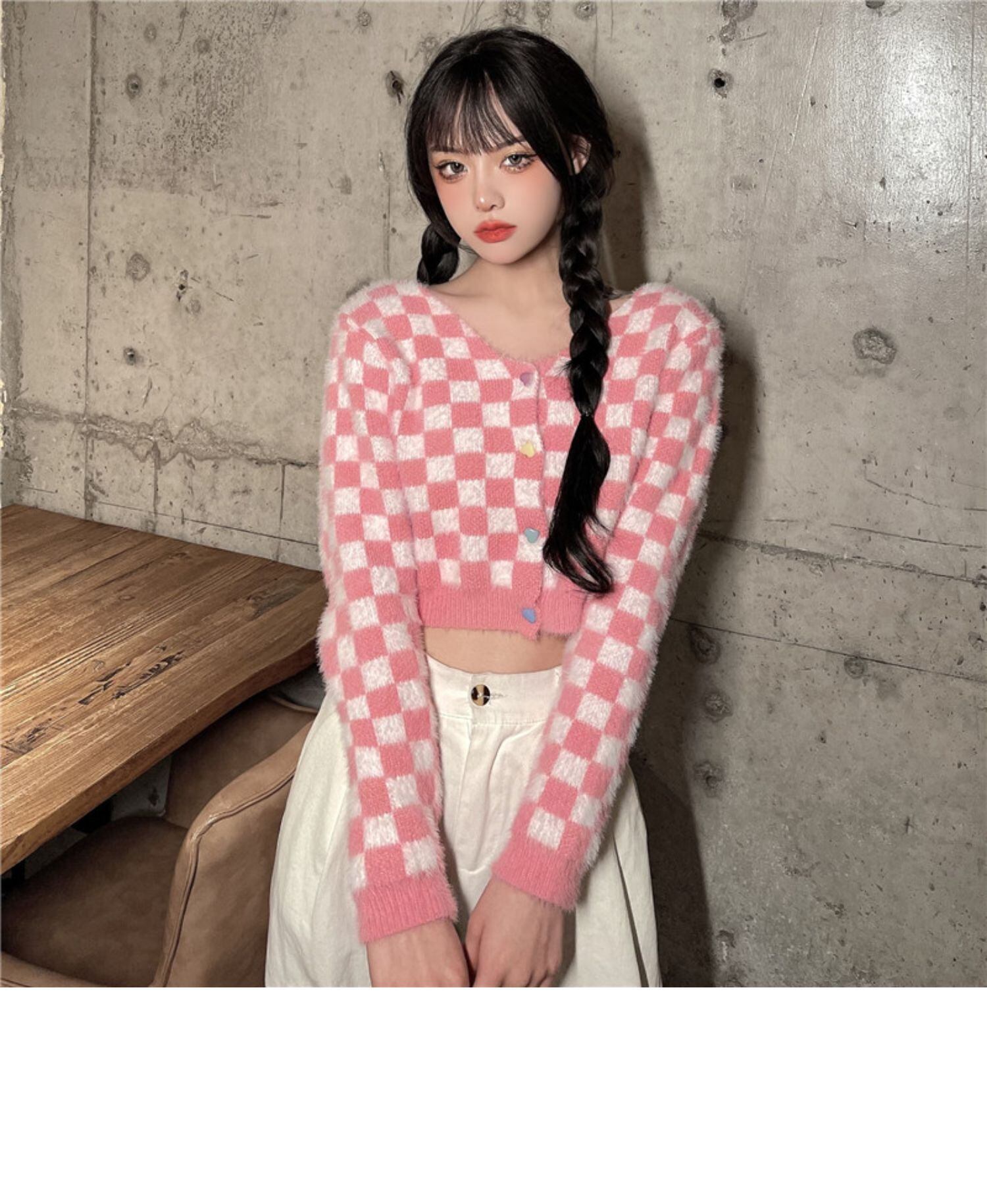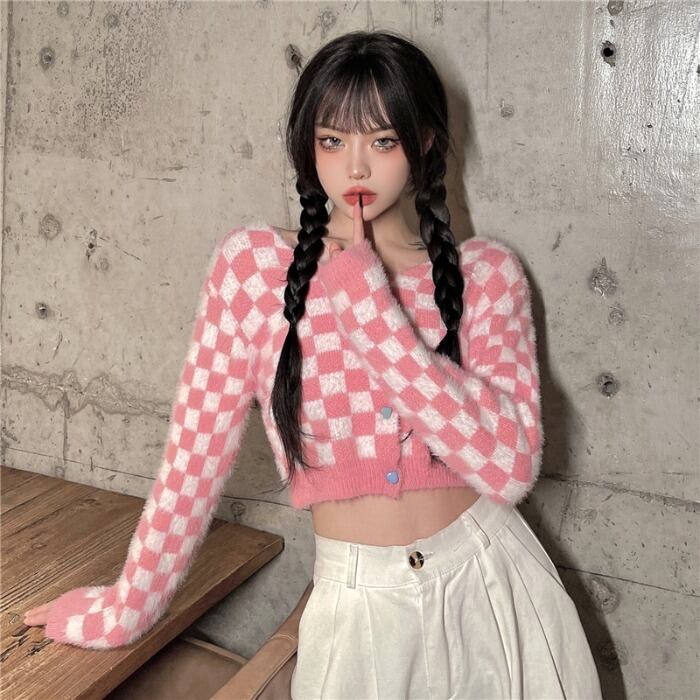 ショートニットカーディガンレディース秋物ウィンター韓国ファッショントレンドスタイルセーター ピンク オータム 冬物 ボーイズ デーモン27613295224