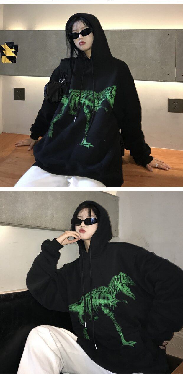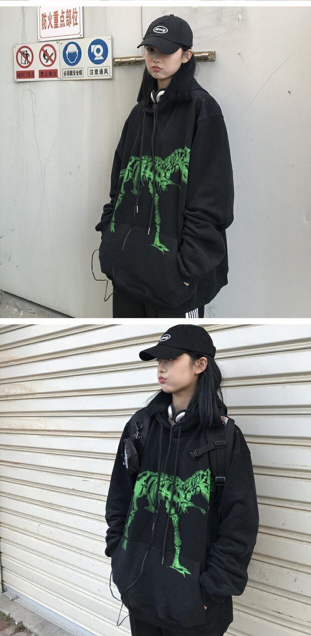 セーター 秋物ウィンターレディース韓国ファッショントレンドスタイルブラックルーズフードジャケット 原宿 オータム 冬物 デーモン11113446340